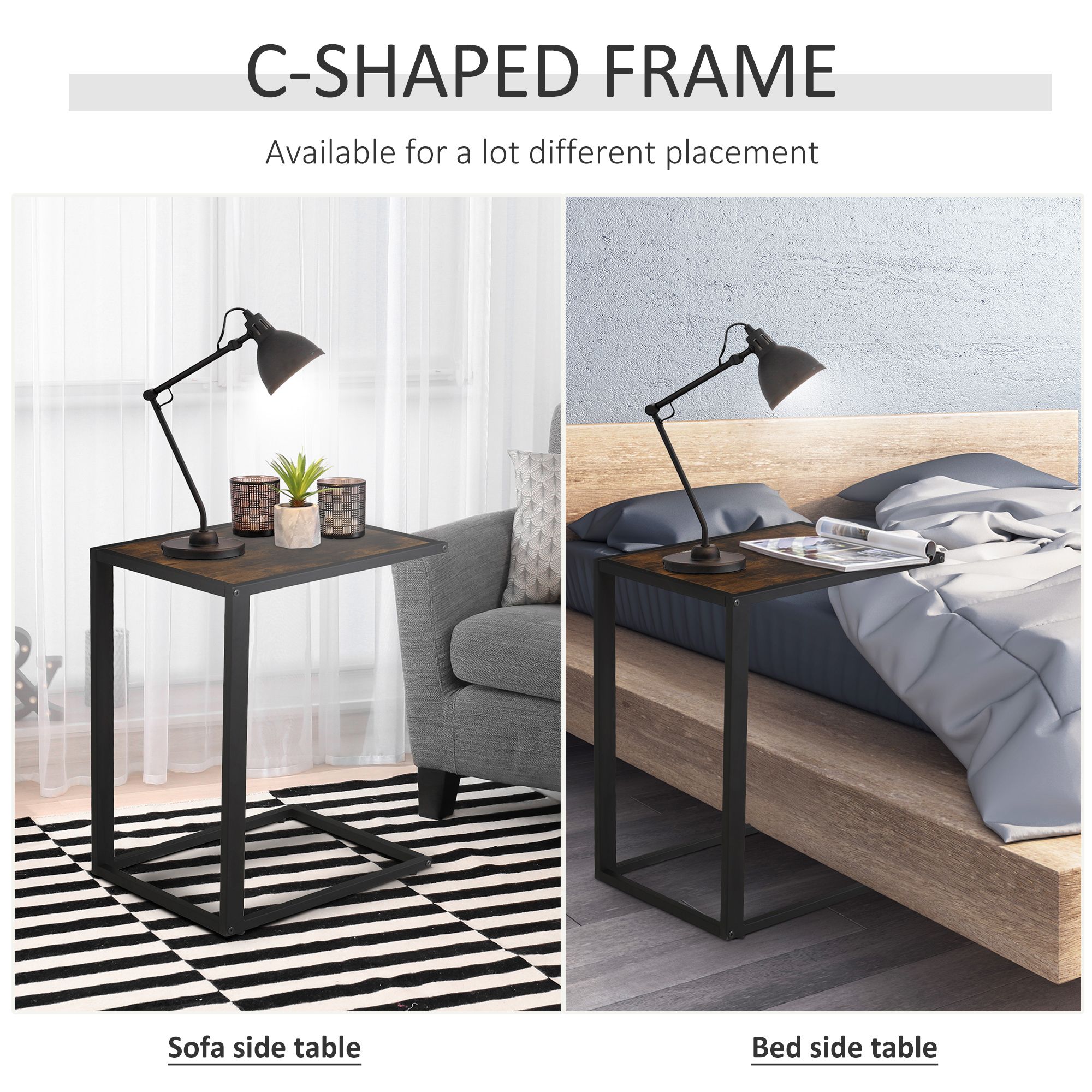 C-Shaped Side Table, Sofa End Table with Metal Frame, Accent Couch Table for Living room, Bedroom, Brown and Black