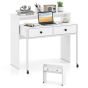CAARNO Extendable Computer Desk with 2 Storage Drawers Convertible Home Office Desk -White