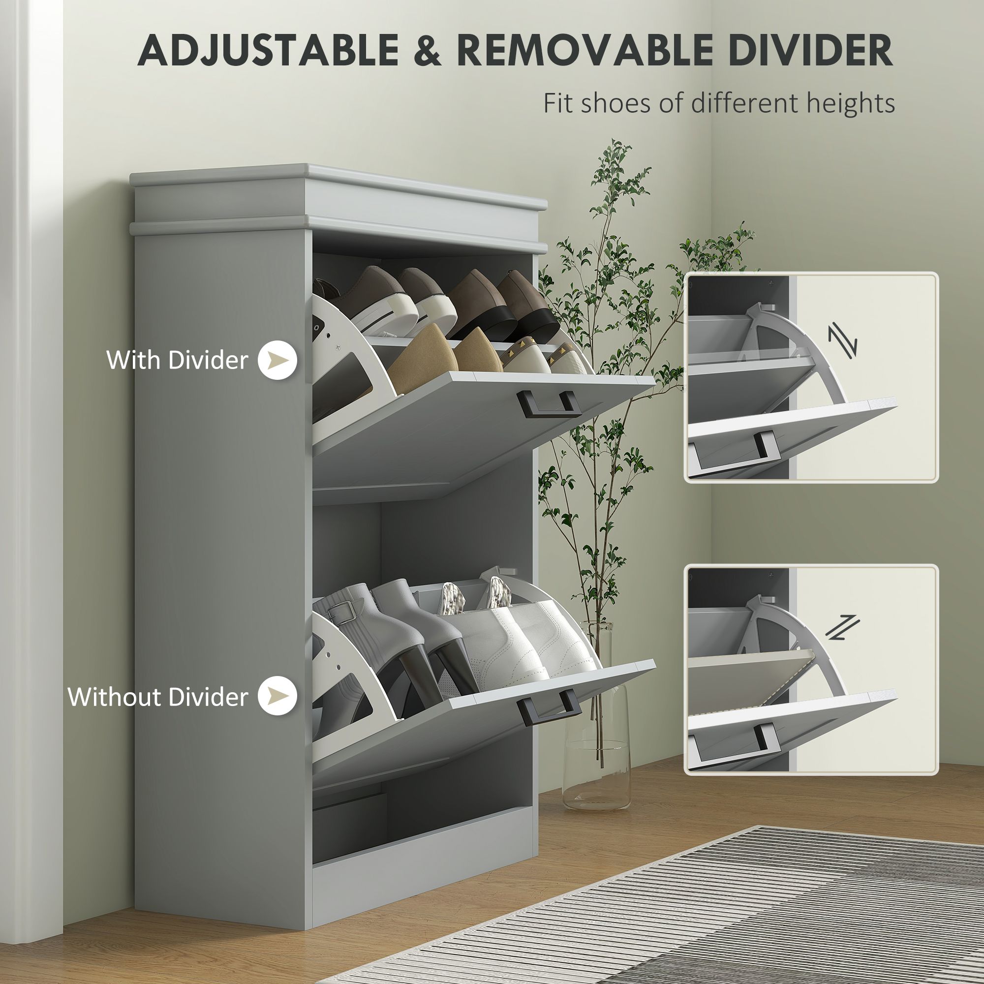 CABINA 2 Drawer Minimalistic Narrow Shoe Storage Cabinet for 10 Shoes - Grey