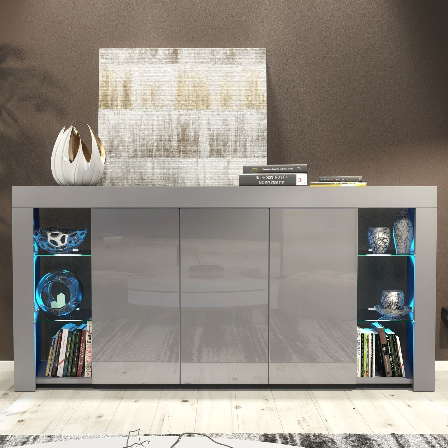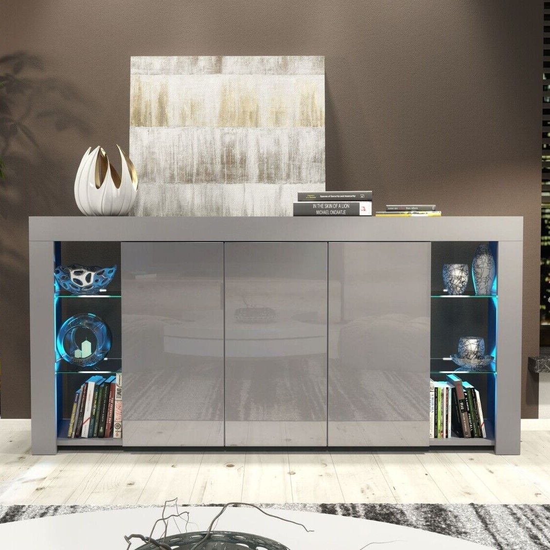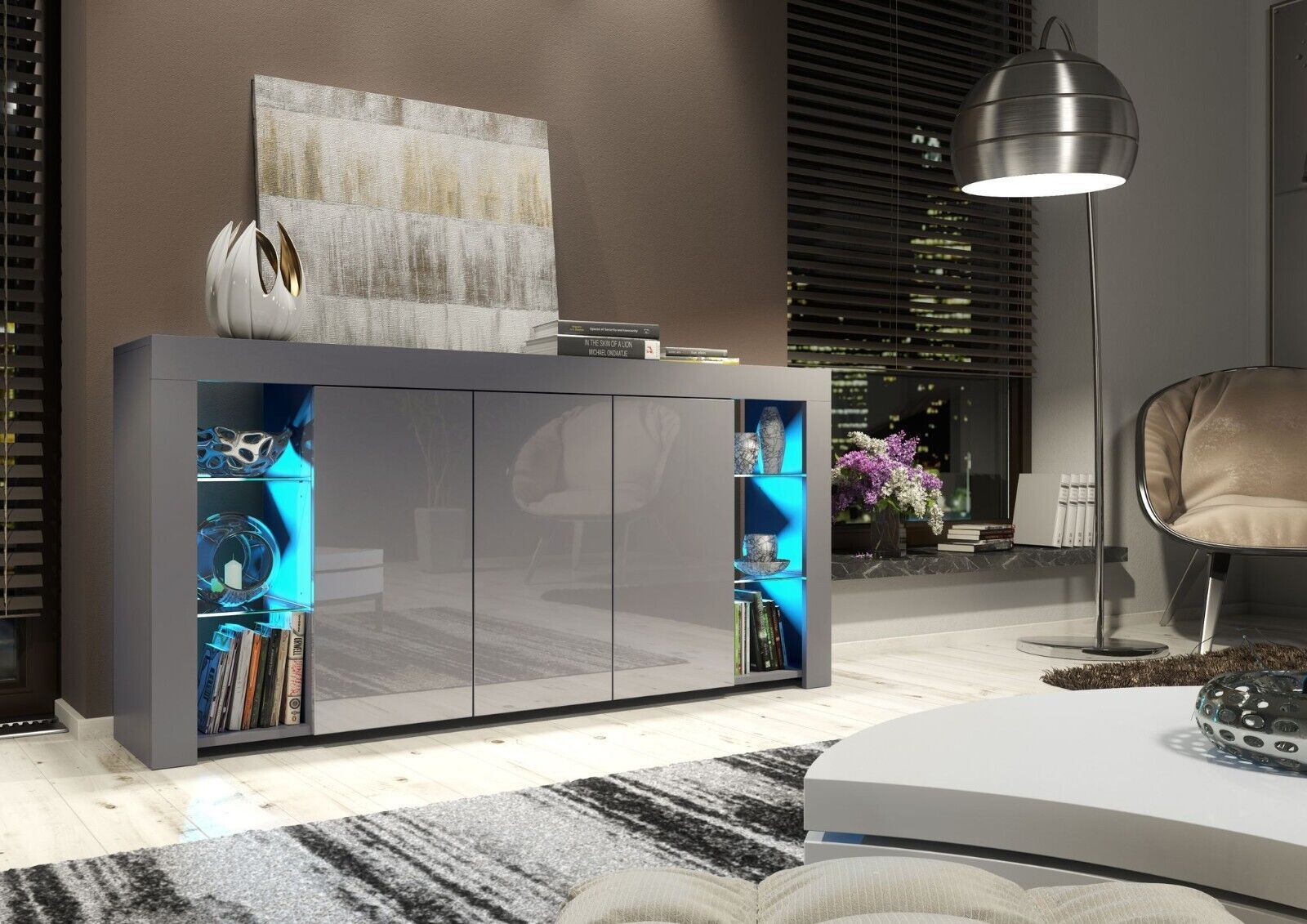 Cabinet Cupboard Sideboard TV Unit with Free LED Lighting and Storage 164cm - Dark Grey