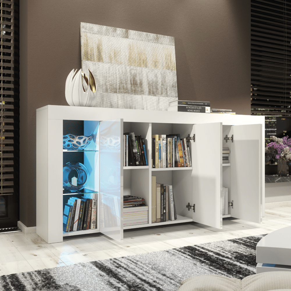 Cabinet Cupboard Sideboard TV Unit with Free LED Lighting and Storage 164cm - White
