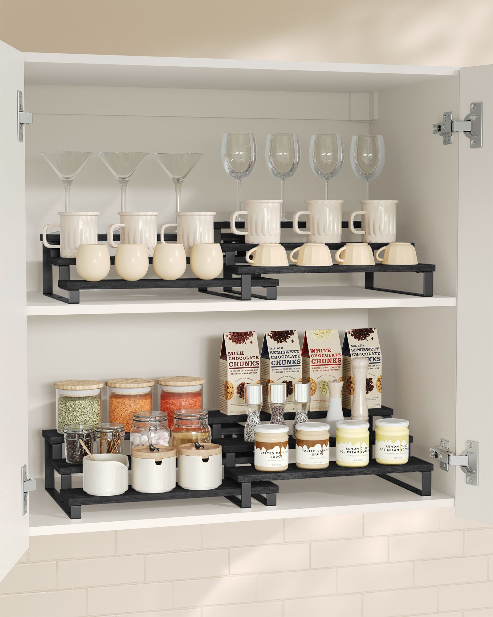 Cabinet Shelf Organizer - SOLTA 3 Tier Cabinet Shelf Organisers Set of 2 - Black