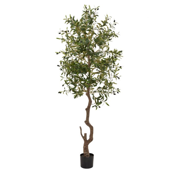 This is the Calabria Large Olive Tree. One of our trio of realistic new olive trees. It is the perfect option for bringing the outdoors in. Why not check out the two smaller sizes of this item too. Display this item in our new rattan baskets (also available in 3 sizes) to add further natural texture to a space. Every detail of this faux tree has been produced to mimic nature and give year round enjoyment. From its realistic fruit to its textured trunk and leaf structure, this beautiful olive tree example is made with care.