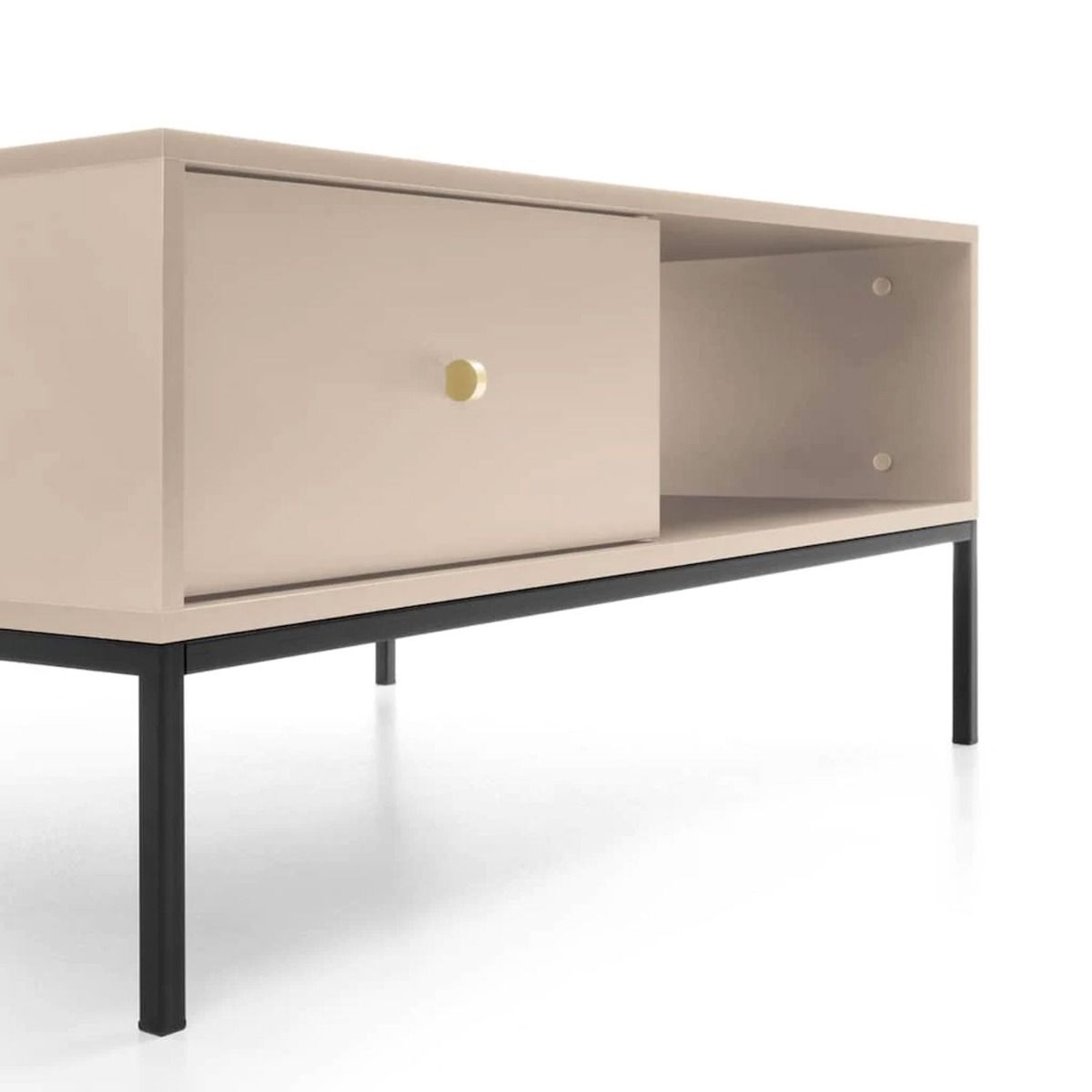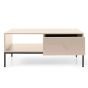 This is a large, versatile and spacious table with a drawer that can be used for storing reading glasses, keys or remote controls. The table is made from 16 mm laminated board with ABS edging. The durable surface protects the table's structure against scratches and stains making it maintenance-free. It offers a contemporary look and will effortlessly blend in any modern or contemporary decor.
