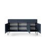 The Mono sideboard cabinet will effortlessly blend in any modern or contemporary decor and enhance it with style. With three drawers and three hinged doors, ample space is available for categorically storing a range of different items, both big and small. It is made from 16mm laminated board with ABS edging and there are two different colours to choose from: red or navy with black metal legs.