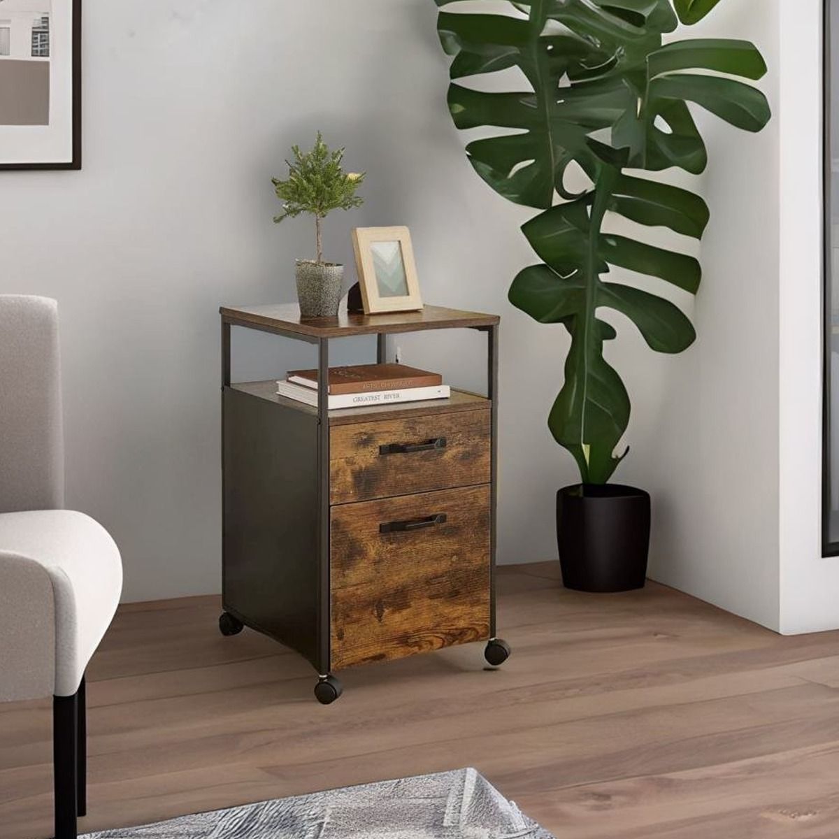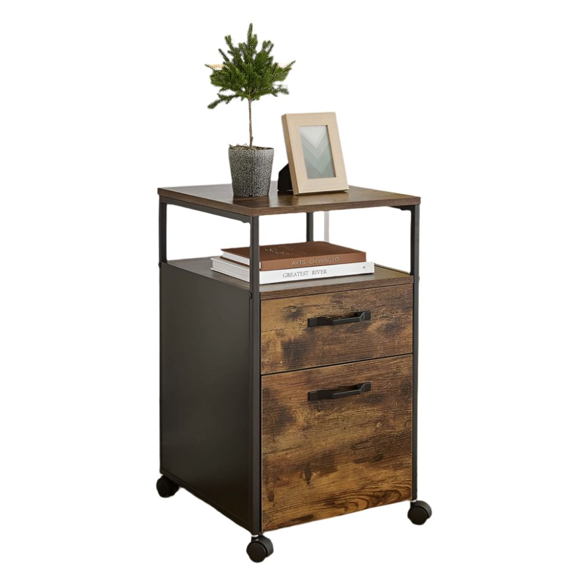 CALIVERN Filing Cabinet Drawer Unit with Wheels - Rustic Brown and Black