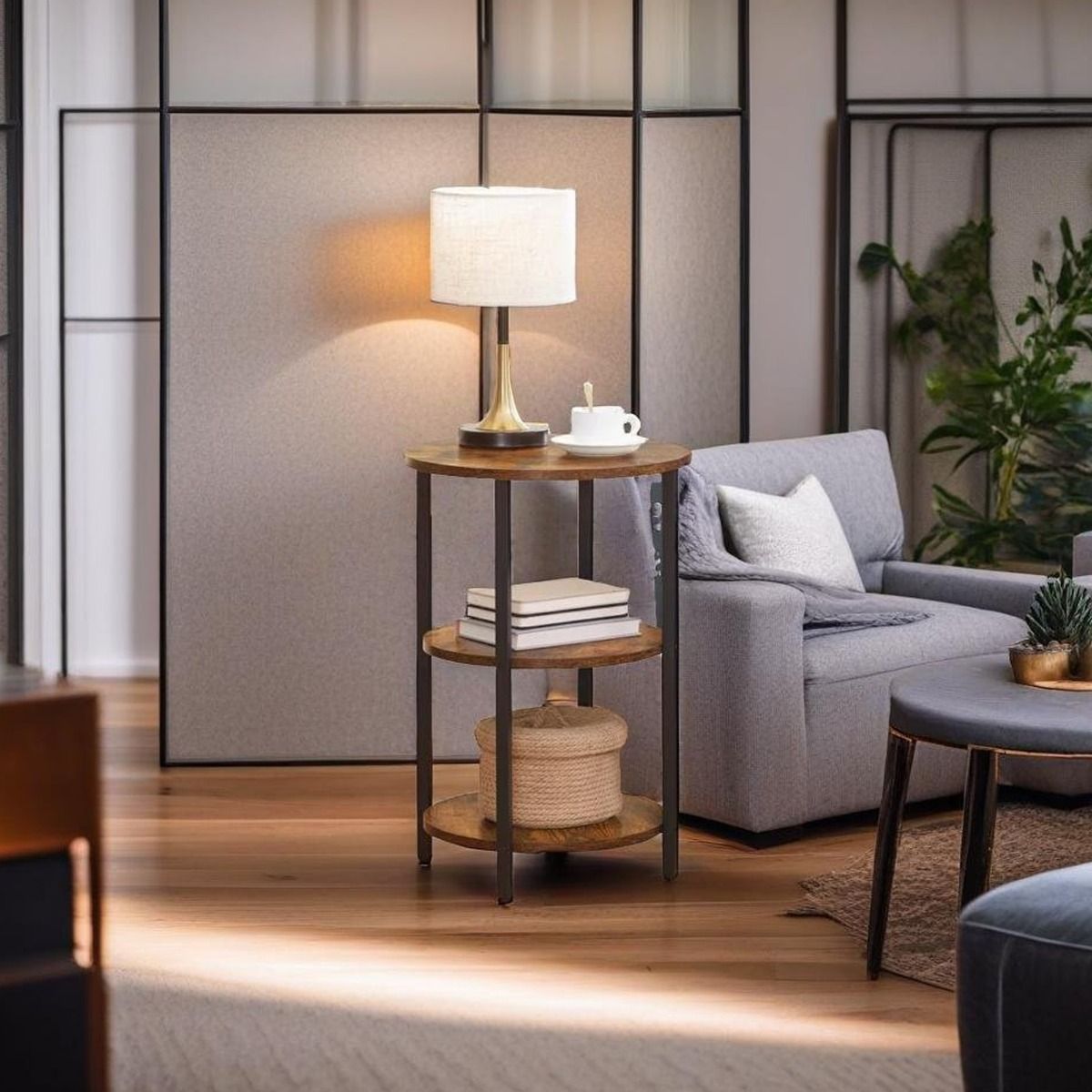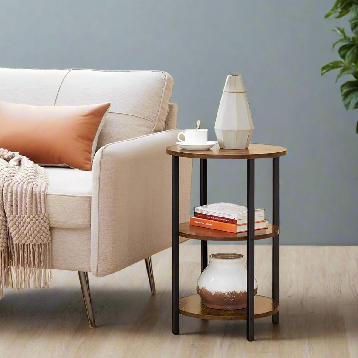 CALIVERN Side Table 3-Tier Round End Table Design - Rustic Brown and Black