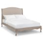 The frame is finished in a limed oak effect, with a soft upholstered headboard covered in an oatmeal linen fabric. The Camille Bed is available in 135cm Double, 150cm King, and 180cm super king sizes.