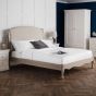 The frame is finished in a limed oak effect, with a soft upholstered headboard covered in an oatmeal linen fabric. The Camille Bed is available in 135cm Double, 150cm King, and 180cm super king sizes.