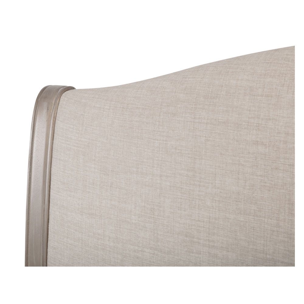 The frame is finished in a limed oak effect, with a soft upholstered headboard covered in an oatmeal linen fabric. The Camille Bed is available in 135cm Double, 150cm King, and 180cm super king sizes.