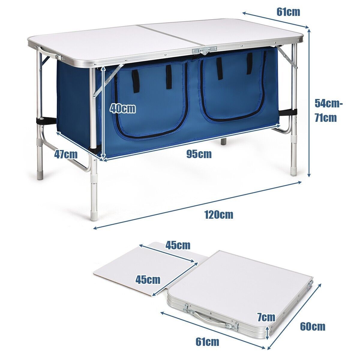 Camp Furniture - Folding Camping Table with Storage Cabinet and Adjustable Height-Blue