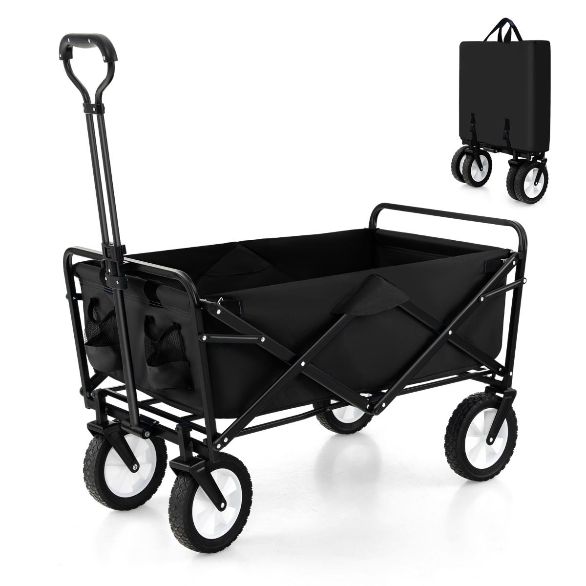Camp Furniture - Heavy Duty Camping Garden Cart with Adjustable Handle and Drink Holders-Black