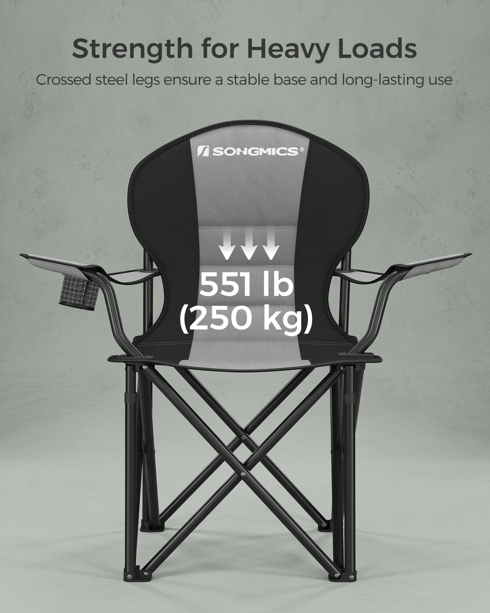 Camping Chair - ORARAE Foldable Padded Seat Cup Holder 250 kg Capacity - Black and Grey