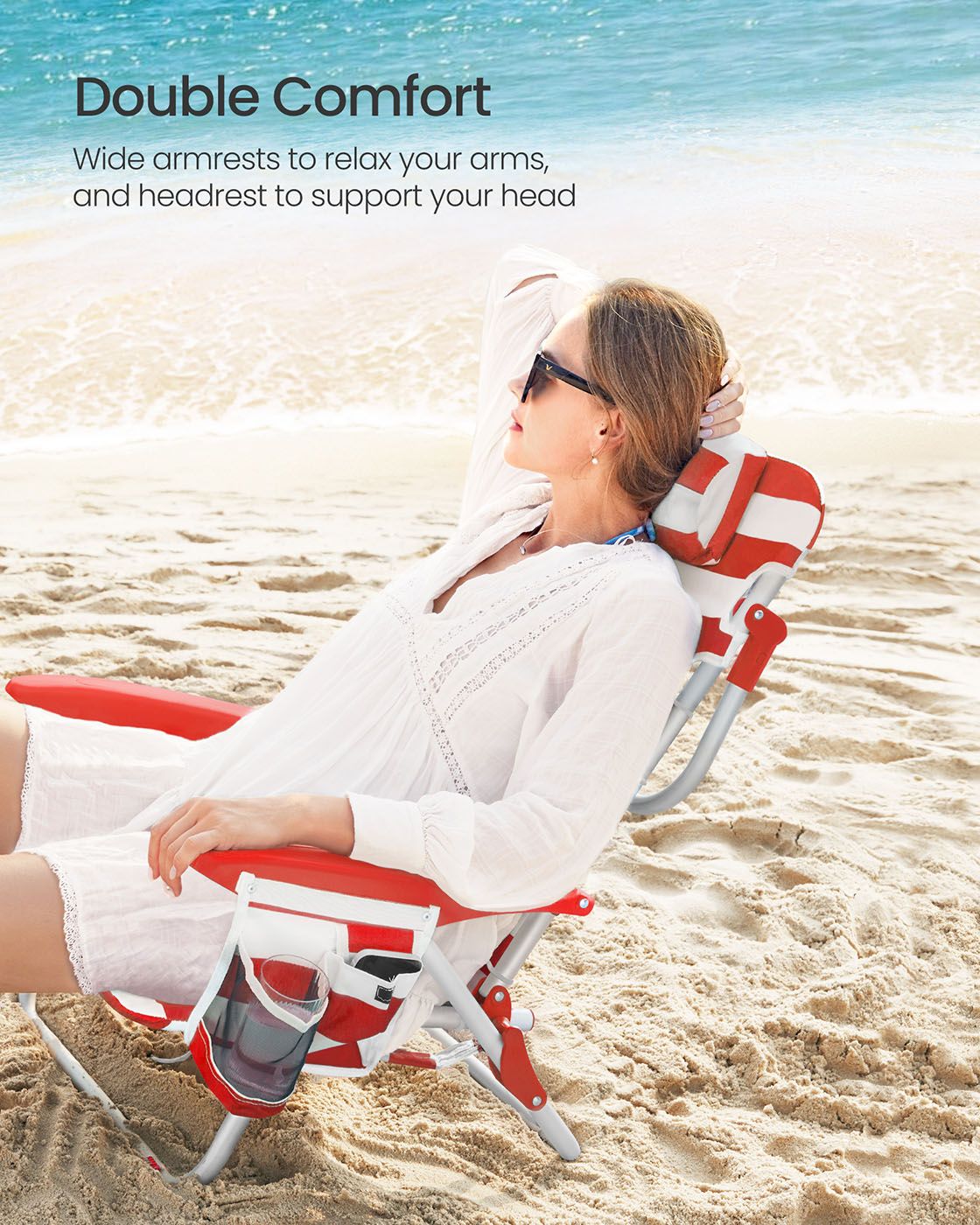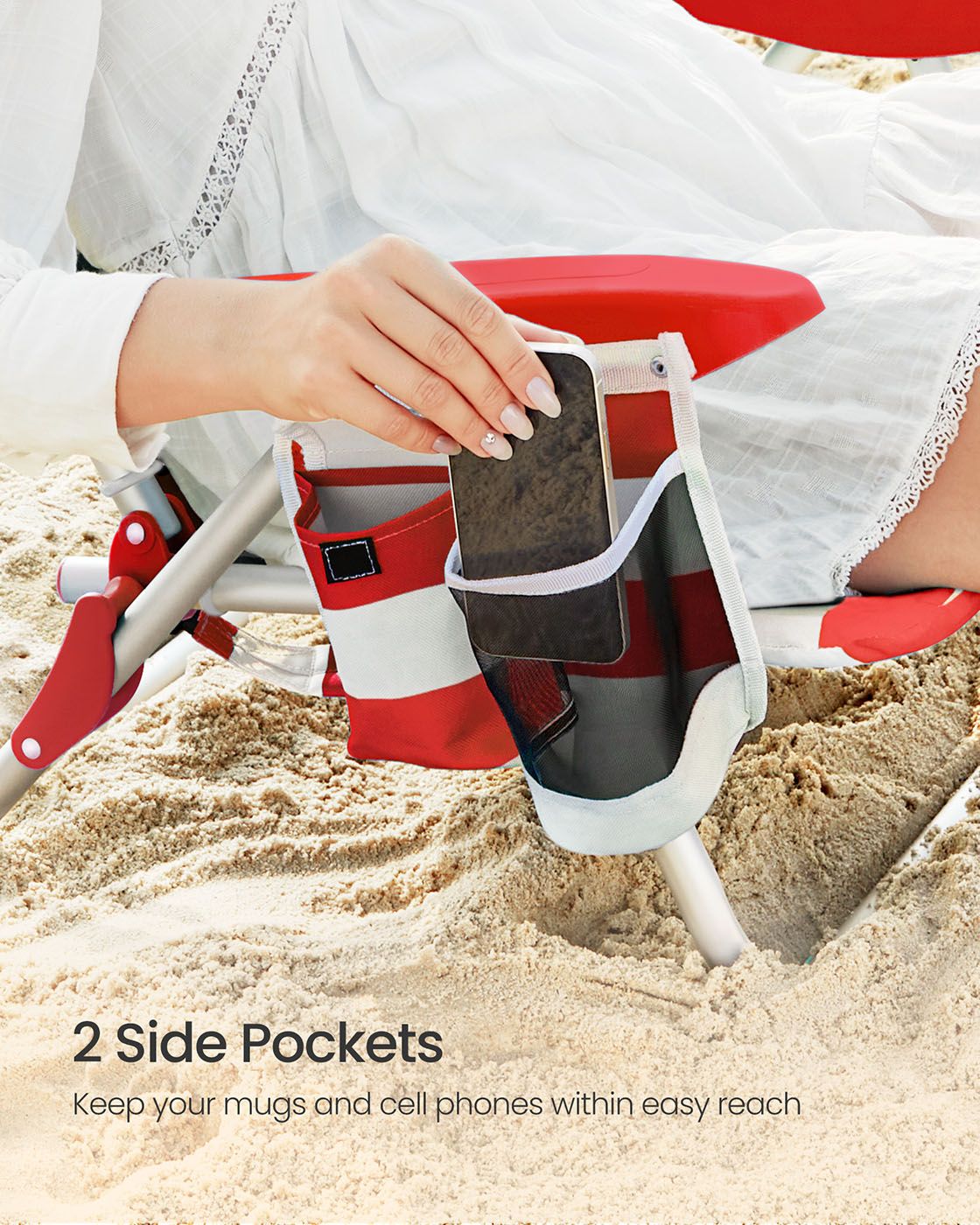 Camping Chair - ORARAE Folding with Cup Holder - Red White