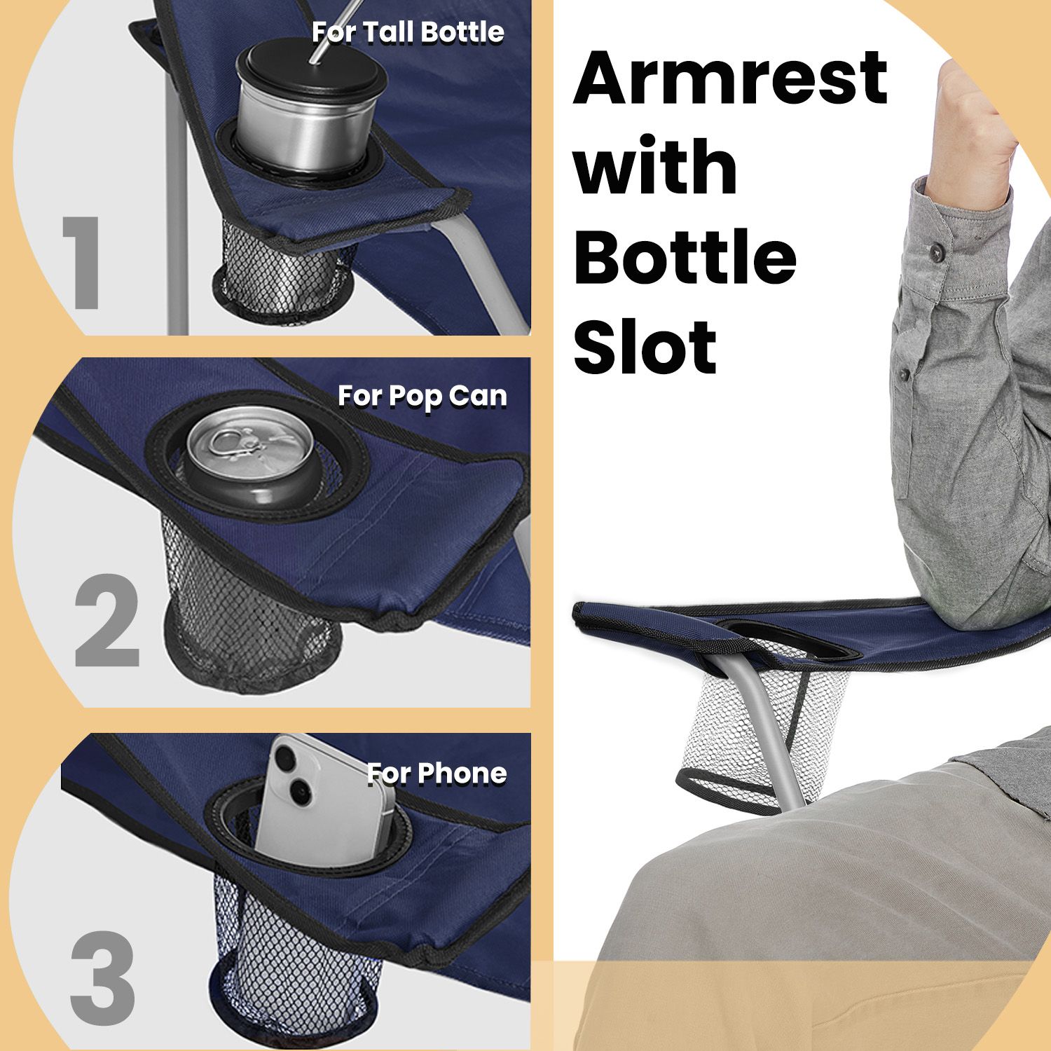 Camping Chairs - FIORIA Folding Outdoor Chairs with Armrest - Blue