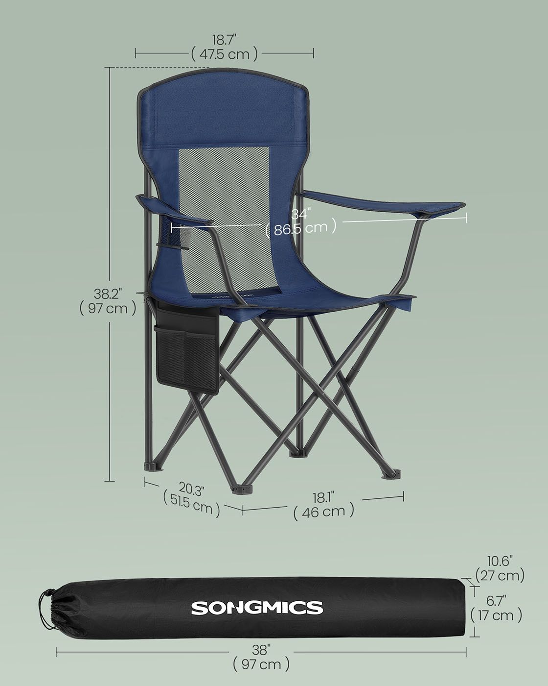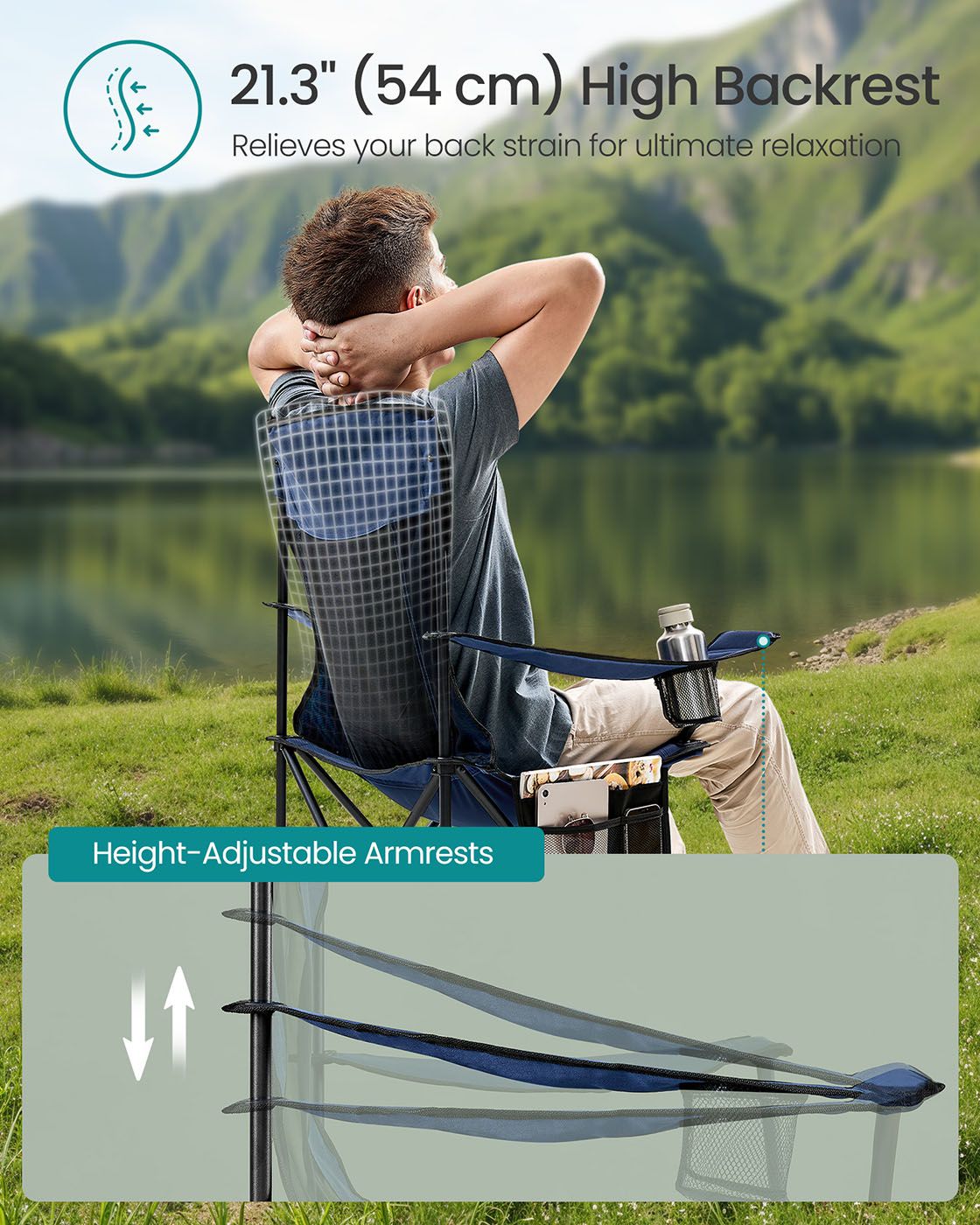 Camping Chairs - ORARAE Set of 2 with Adjustable Armrests and Cup Holder - Harbor Blue