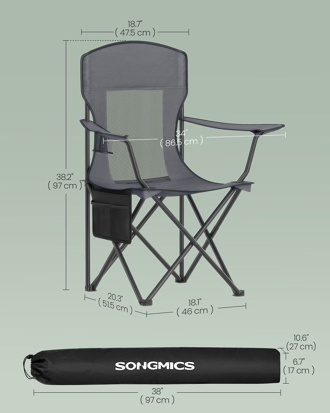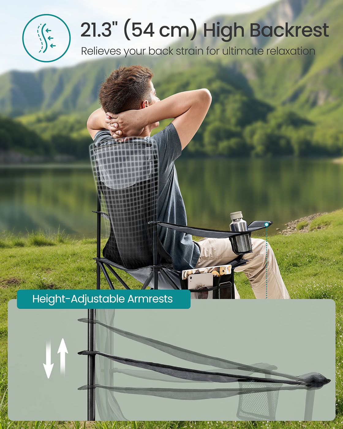 Camping Chairs - ORARAE Set of 2 with Adjustable Armrests and Cup Holder - Slate Grey