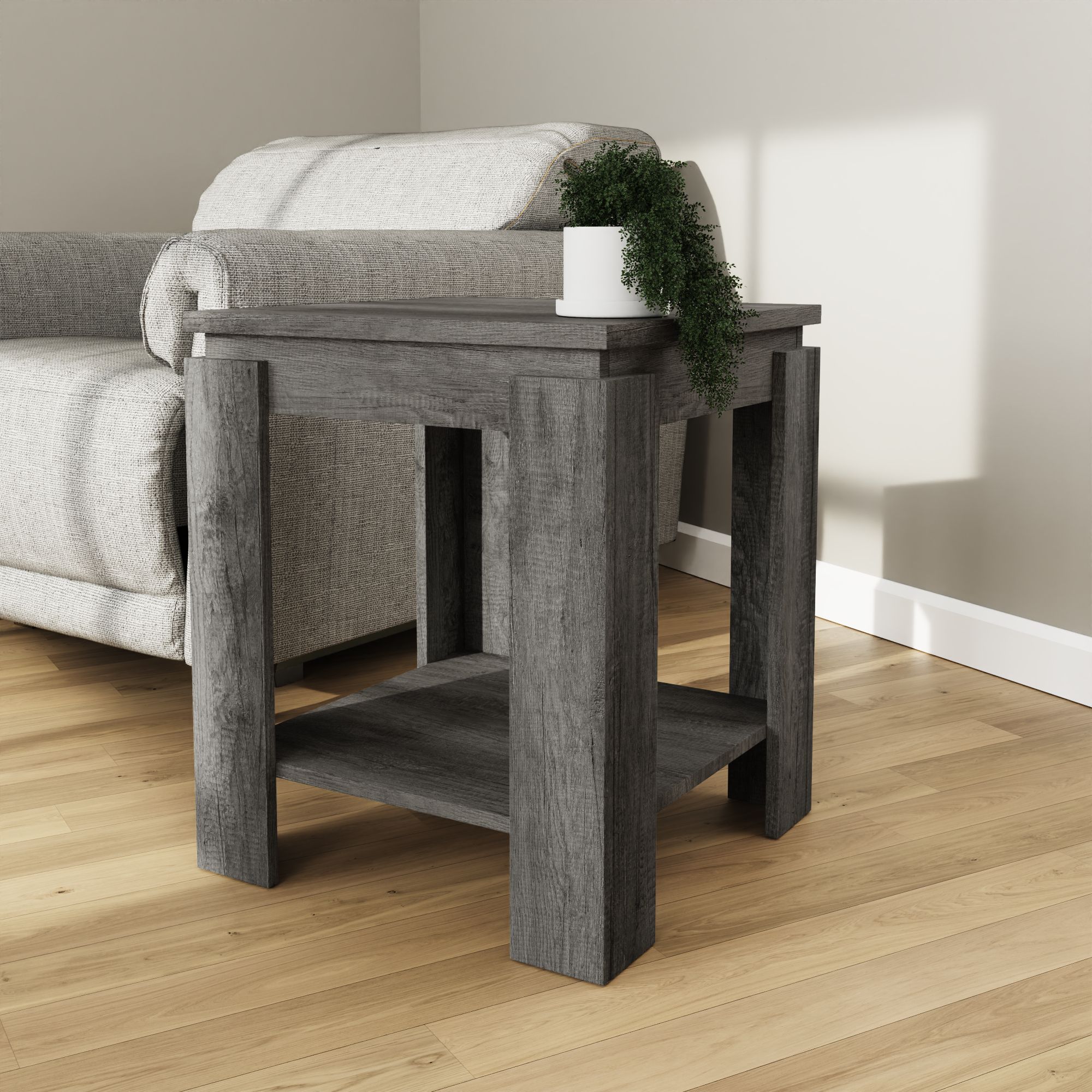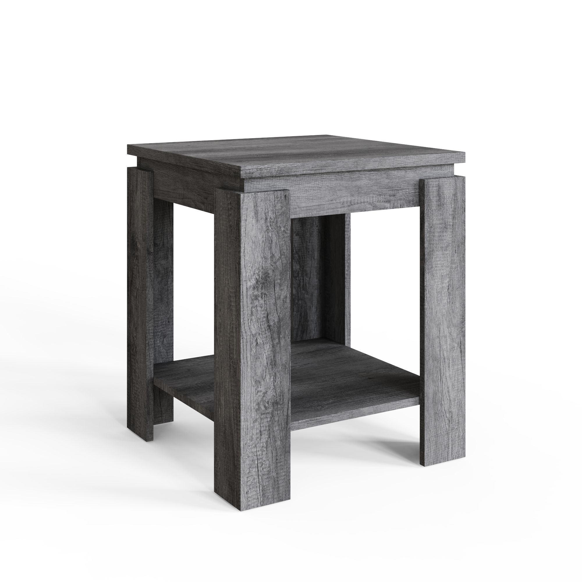CANON Lamp Table with Shelf and Rustic Finish - Charcoal Grey