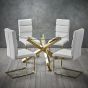 Add some dazzle to your dining area with old school glamour Capri table, Gleaming gold finish legs with a clear glass table top, perfectly partnered with the velvet Lara chair that has a matching gold leg.