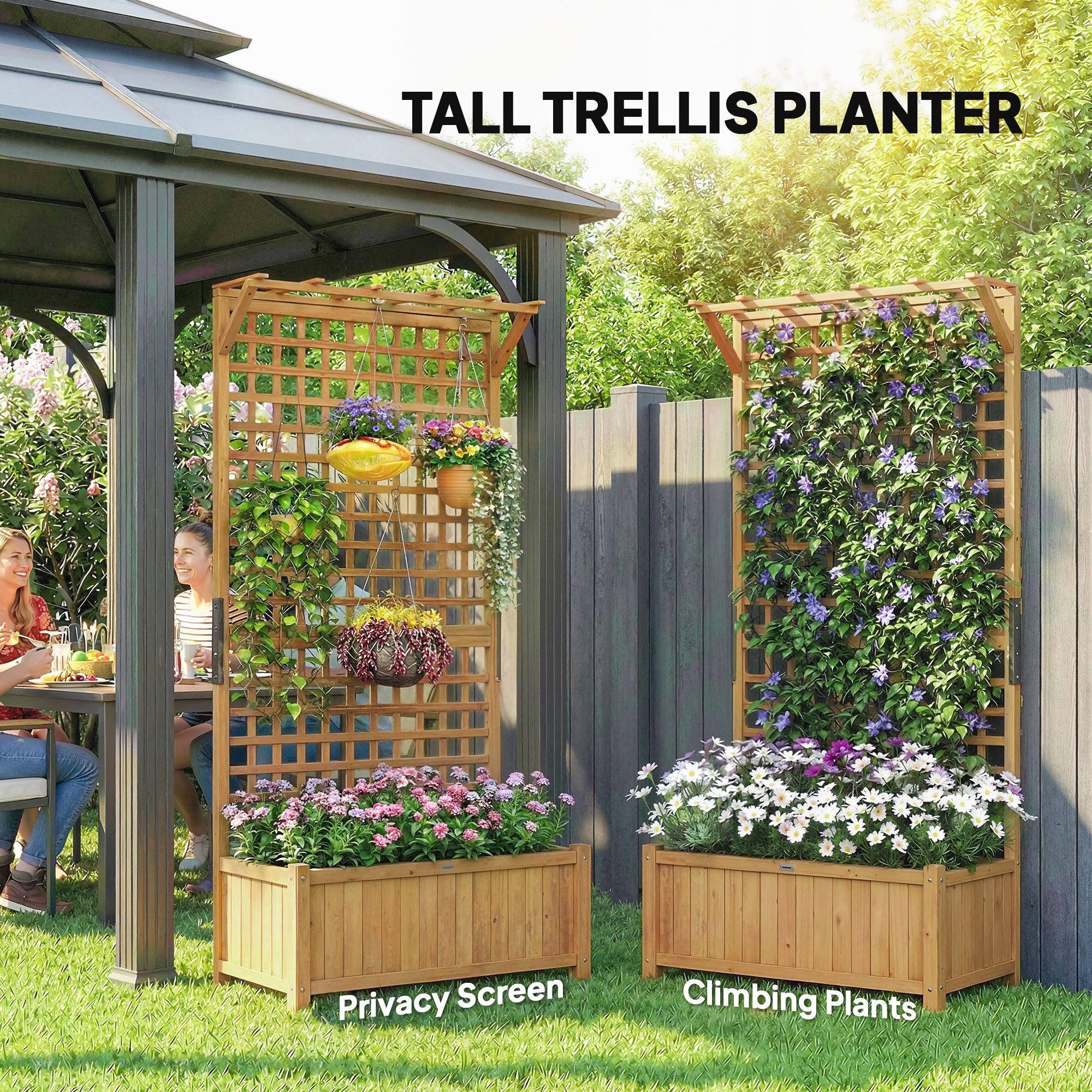 Two-in-one design: combines a garden bed with a trellis - duo piece which has a box for plants and flowers, with the gridded back for climbing plants and vines. Hanging roof: extra room on this trellis planter is suitable for baskets and pots. Adds more growing space and natural colour. 5 cm inner planter size: room to grow a variety of plants, flowers and vegetables. Elevated design helps keep pests away. Drainage holes to prevent water build-up. Fir wood structure: a long-lasting and outdoor-suitable piece, finished with water-resistant paint for extra protection. Dimensions: 183 H x 90 W x 45 D cm. Plant box inner: 25 H x 83. Maximum load 50 kg. Assembly required