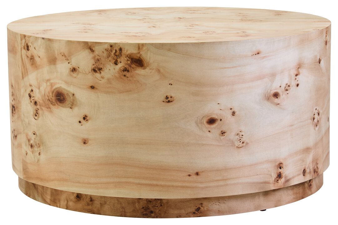 This burl wood design round coffee table showcases an organic charm and a smooth finish, making it a versatile addition to modern interiors.
