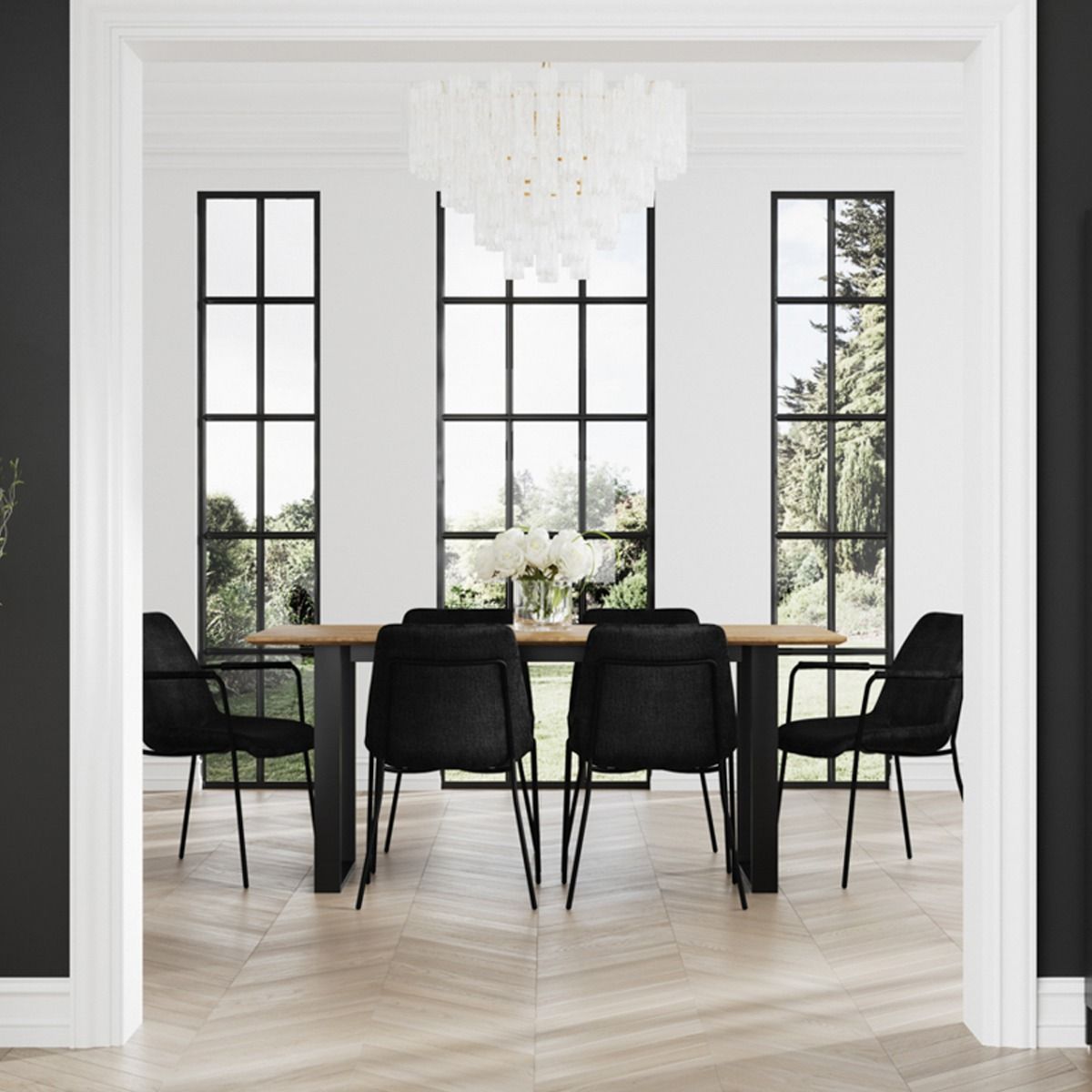 Elevate your dining space with the Carlow chair, featuring sleek black velvet upholstery and a sturdy metal frame. Perfect for modern homes, its curved back and armrests provide comfort and style. Ideal for residential use, its durable design ensures long-lasting performance. Wipe clean with a damp cloth for easy maintenance.