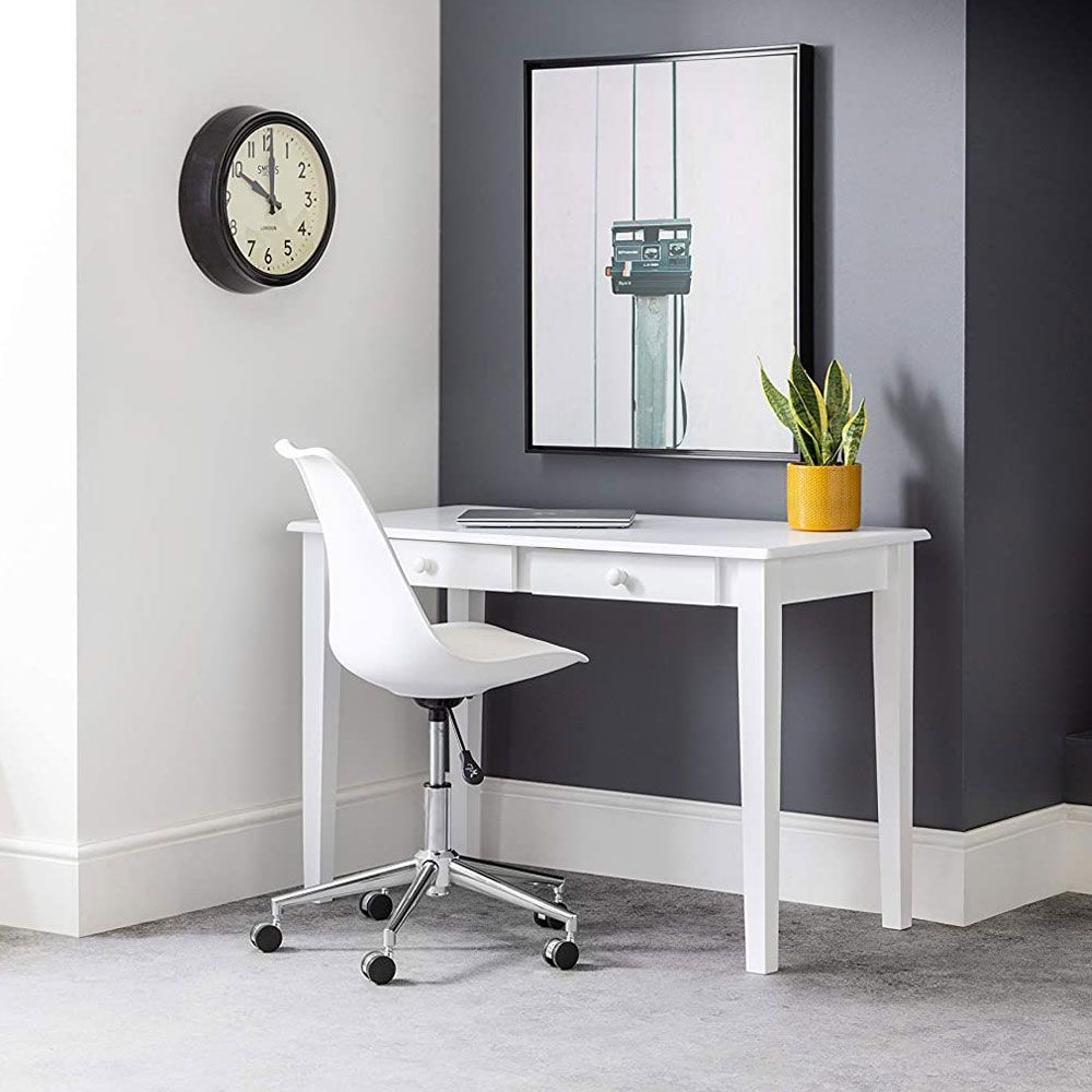 Finished in a crisp white lacquer, the free-standing Carrington Desk has a simple, yet stylish look. Featuring two drawers with rounded handles for storing all your stationary essentials,