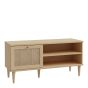 Enhance your living space with the CARSLEY TV Unit in Rattan. Featuring a Provensal design and Oak Elegance/Technorattan finish, this unit combines style and functionality. Enjoy the convenience of silent closing and the durability of ABS edging for lasting protection.