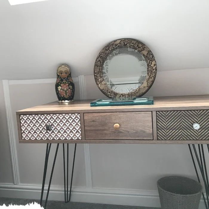 The Casablanca Desk stands on black wired legs and contains three useful drawers and a large working area perfect for all your needs. The Desk is constructed from particle board with a wood effect finish.