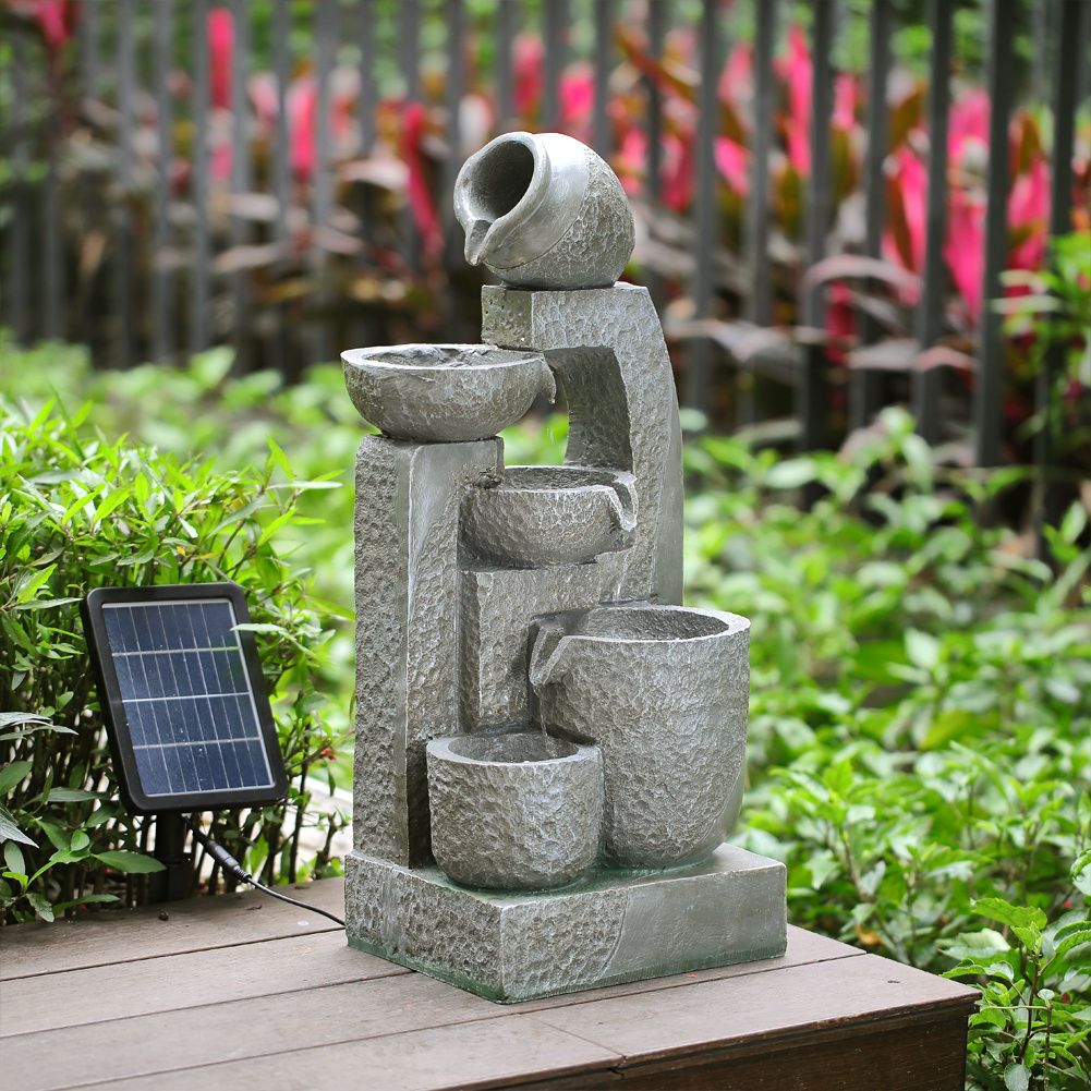 Cascade Solar-powered Water Fountain for Outdoors, Grey