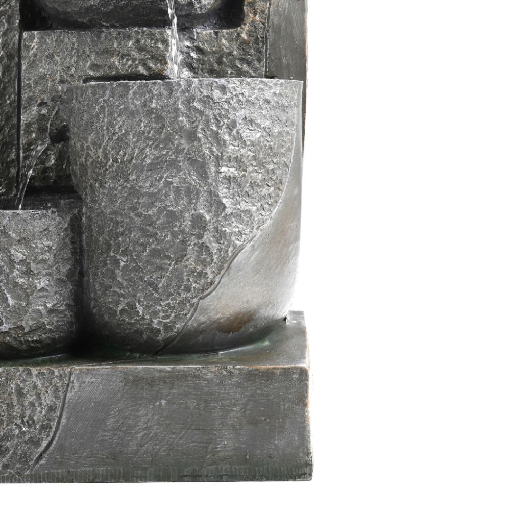 Handmade with utmost details, our water fountain has a beautifully rippled surface, which makes it the best match with your garden greenery. The water flows from the jug into layers of bowls, creating the soothing sound of water babbling. When the lights are on, it seams as if the pots are filled with gold. As long as there is sun, you can enjoy the treats this water fountain brings for free.