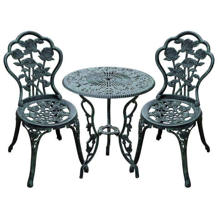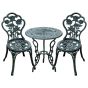 Cast Aluminium Outdoor Patio Garden Bistro Elegant Design Table Chair Set - Green (3-Piece)