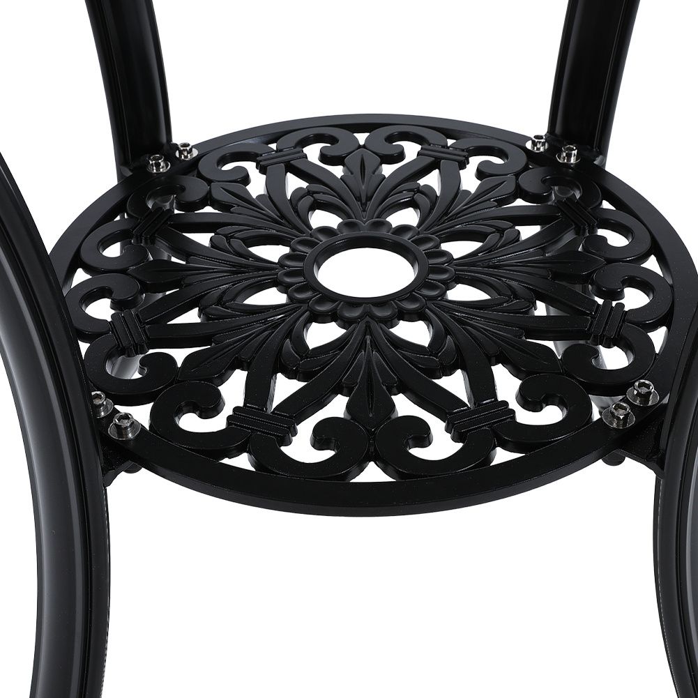 Elevate your outdoor gatherings with the timeless charm of our Patio Table. Its spacious tabletop effortlessly hosts your feasts, while the intricate cut-out design exudes vintage allure and keeps surfaces dry. Crafted from durable cast aluminum, it bravely endures the elements. Complete with a built-in parasol hole, it invites you to savor shaded dining experiences. Enjoy alfresco elegance, effortlessly.