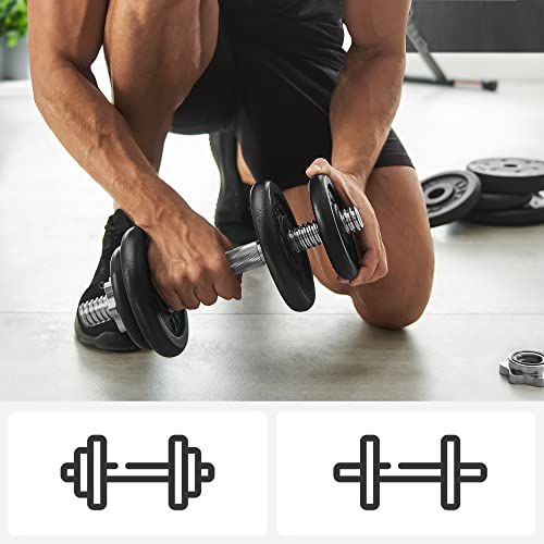 Combination of diverse plates, easy to increase or decrease the weight quickly20 kg weights can be freely assembled into dumbbells of 10 kg, 15 kg, and 20 kg.30 kg weights can be freely assembled into dumbbells of 10 kg, 15 kg, 20 kg, 25 kg, and 30 kg.40 kg weights can be freely assembled into dumbbells of 10 kg, 15 kg, 20 kg, 25 kg, 30 kg, 35 kg, and 40 kg.50 kg weights can be freely assembled into dumbbells of 10 kg, 15 kg, 20 kg, 25 kg, 30 kg, 35 kg, 40 kg, 45 kg, and 50 kg.60 kg weights can be freely assembled into dumbbells of 10 kg, 15 kg, 20 kg, 25 kg, 30 kg, 35 kg, 40 kg, 45 kg, 50 kg, 55 kg and 60 kg.Double Non-slip Rubber Rings - Rubber rings at both sides of the star locks and handles to protect plates, increases friction, and prevent it from loosening.High-grade Plates with Powder Coating- No smell and more environmentally concious than the lacquered plates.Non-slip Handle - knurled handle grip is non-slip and durable for a more comfortable feel.