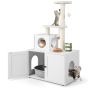 Cat Furniture - Cat Litter Box Enclosure with Cat Tree and Kitty Condo-White