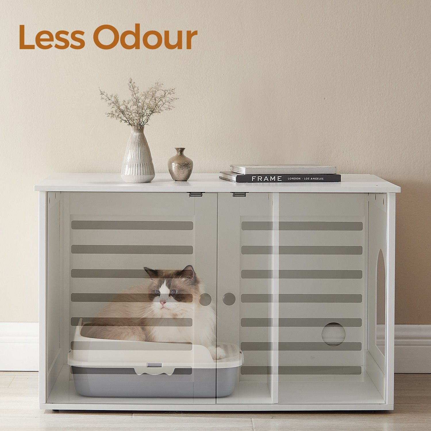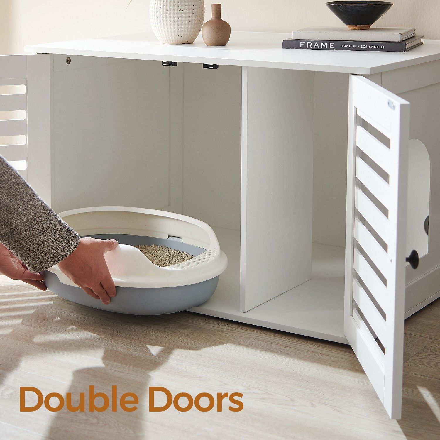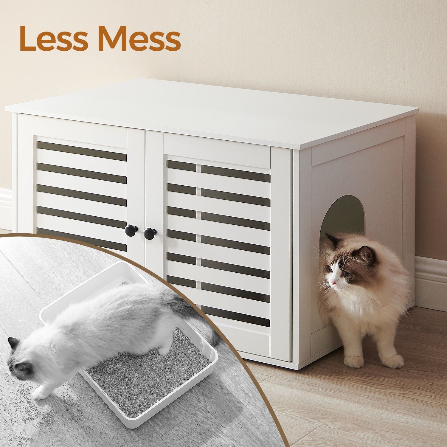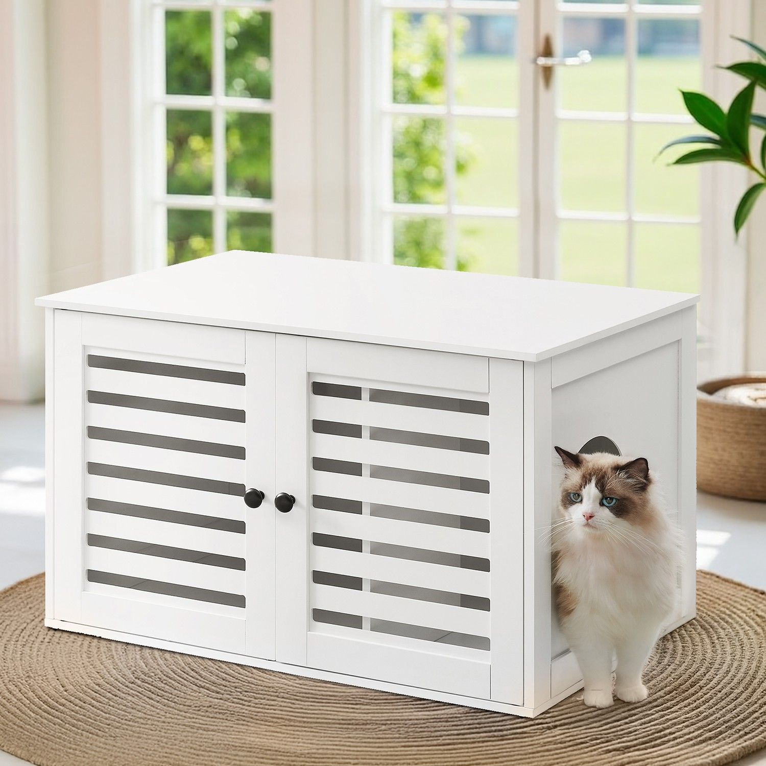 Cat Litter Box Cabinet - MARRAE Enclosed Pet Furniture with Removable Divider - White