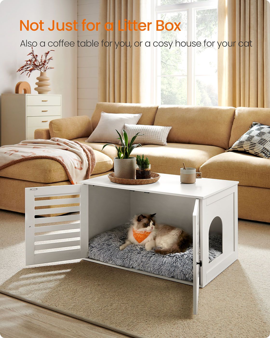 Cat Litter Box Enclosure - AVONZA Hidden Litter Box Furniture with Removable Divider - White