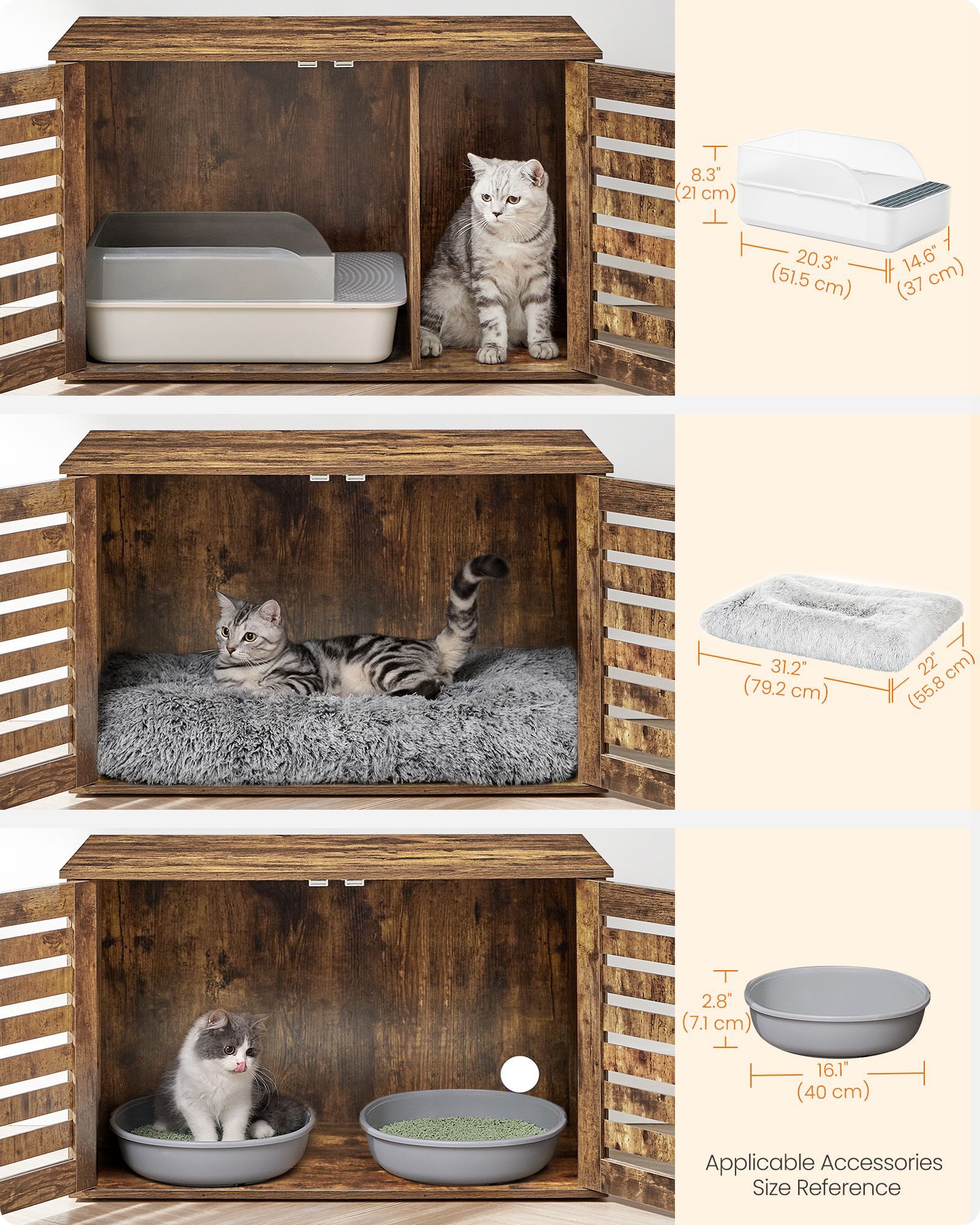 Cat Litter Box Enclosure - AVONZA Rustic Brown with Removable Divider - Rustic Brown