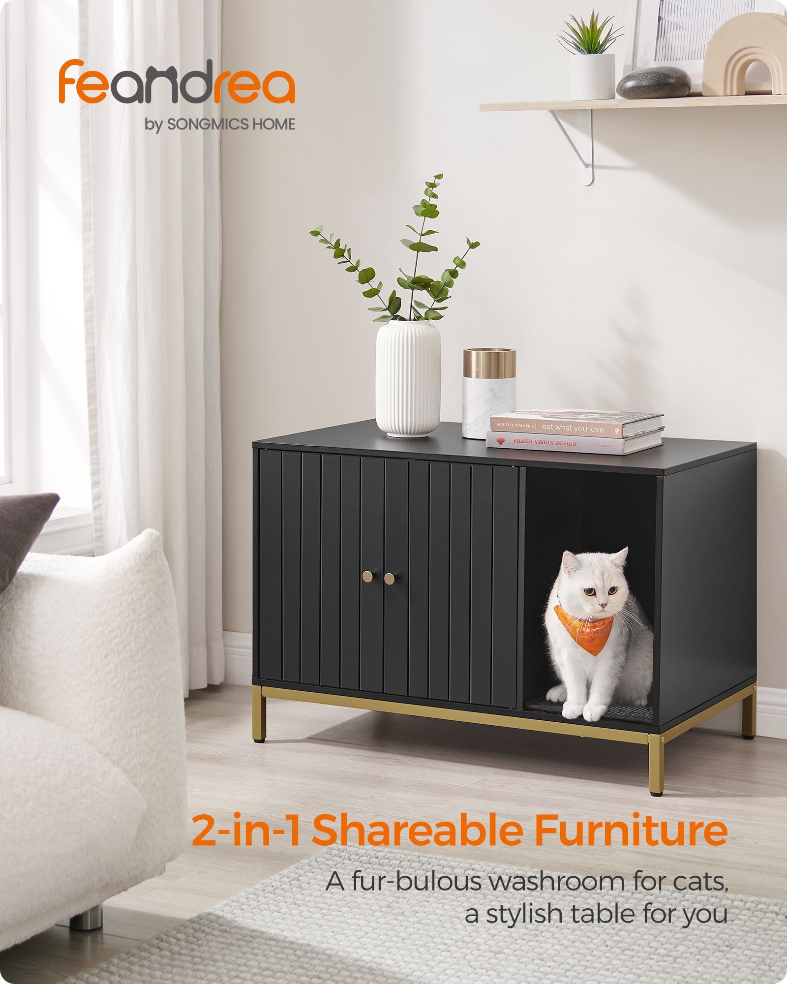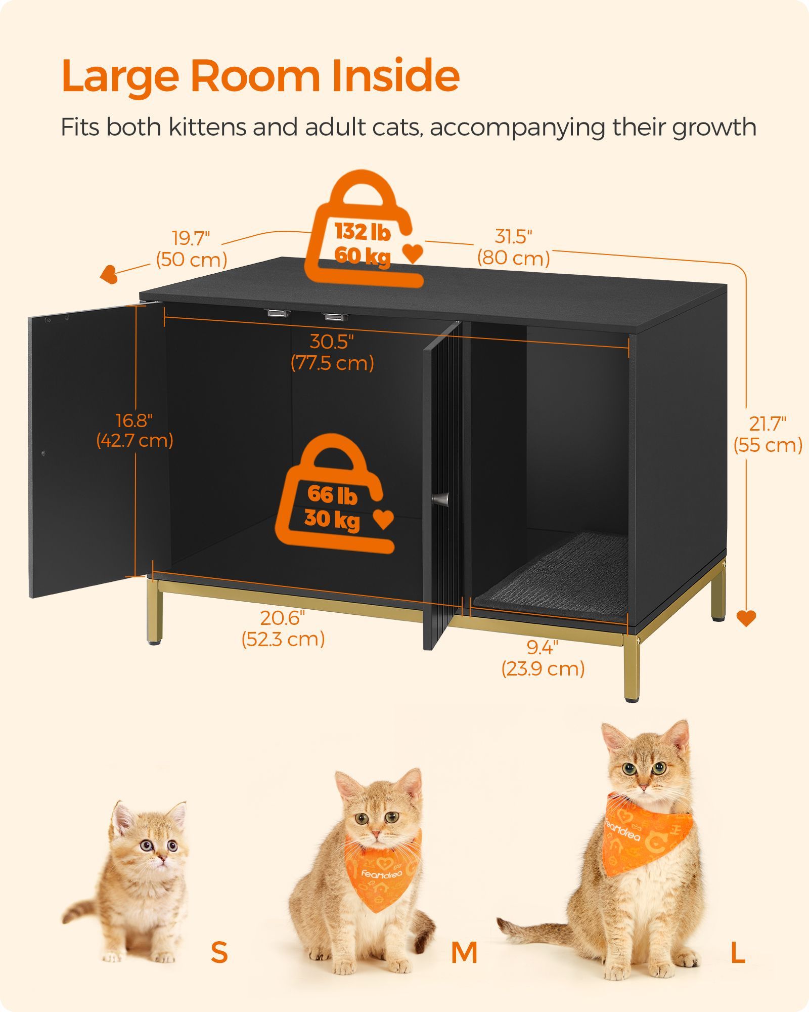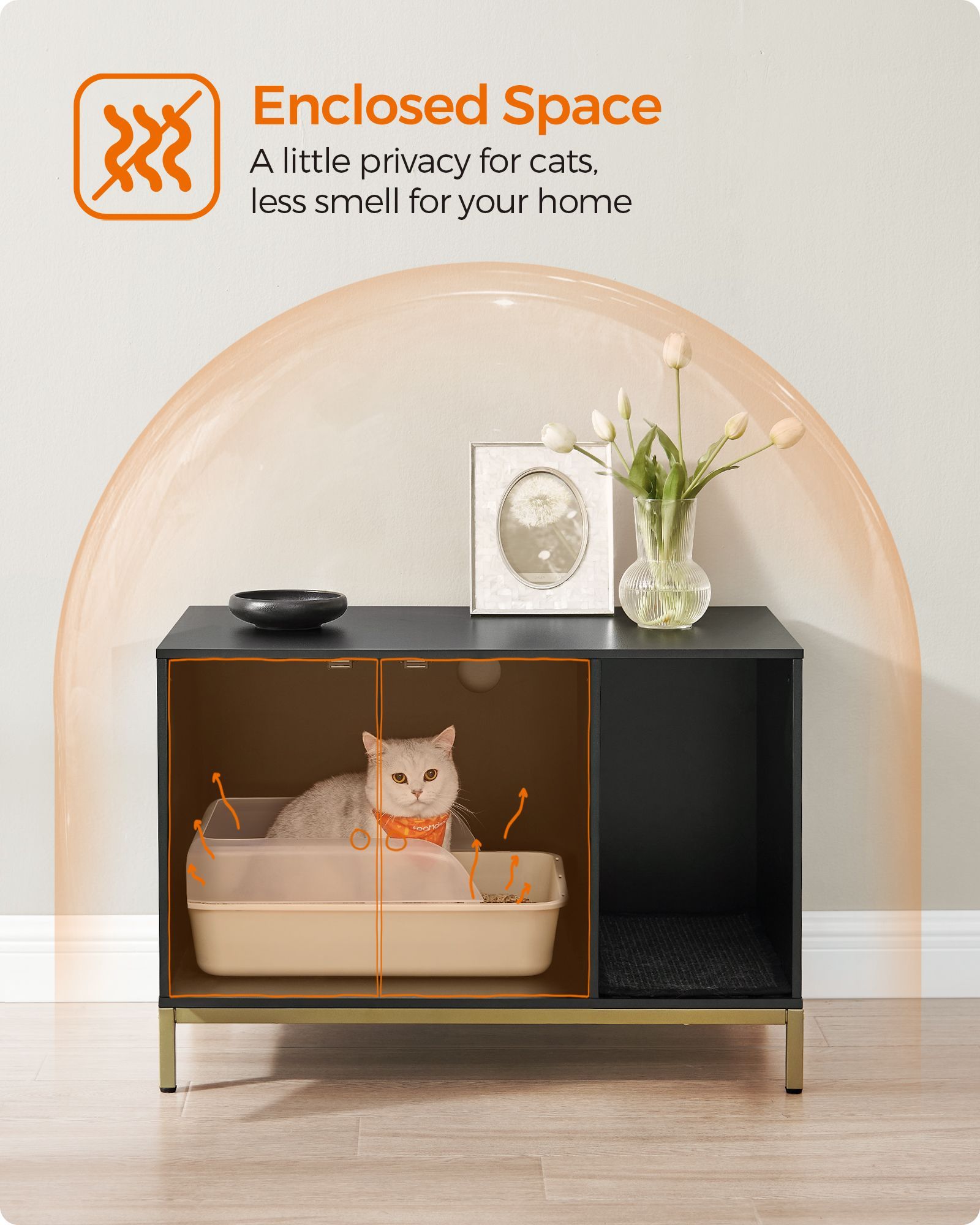 Cat Litter Box Enclosure - AVONZA Scratching Mat Hidden Litter Box - Black and Gold