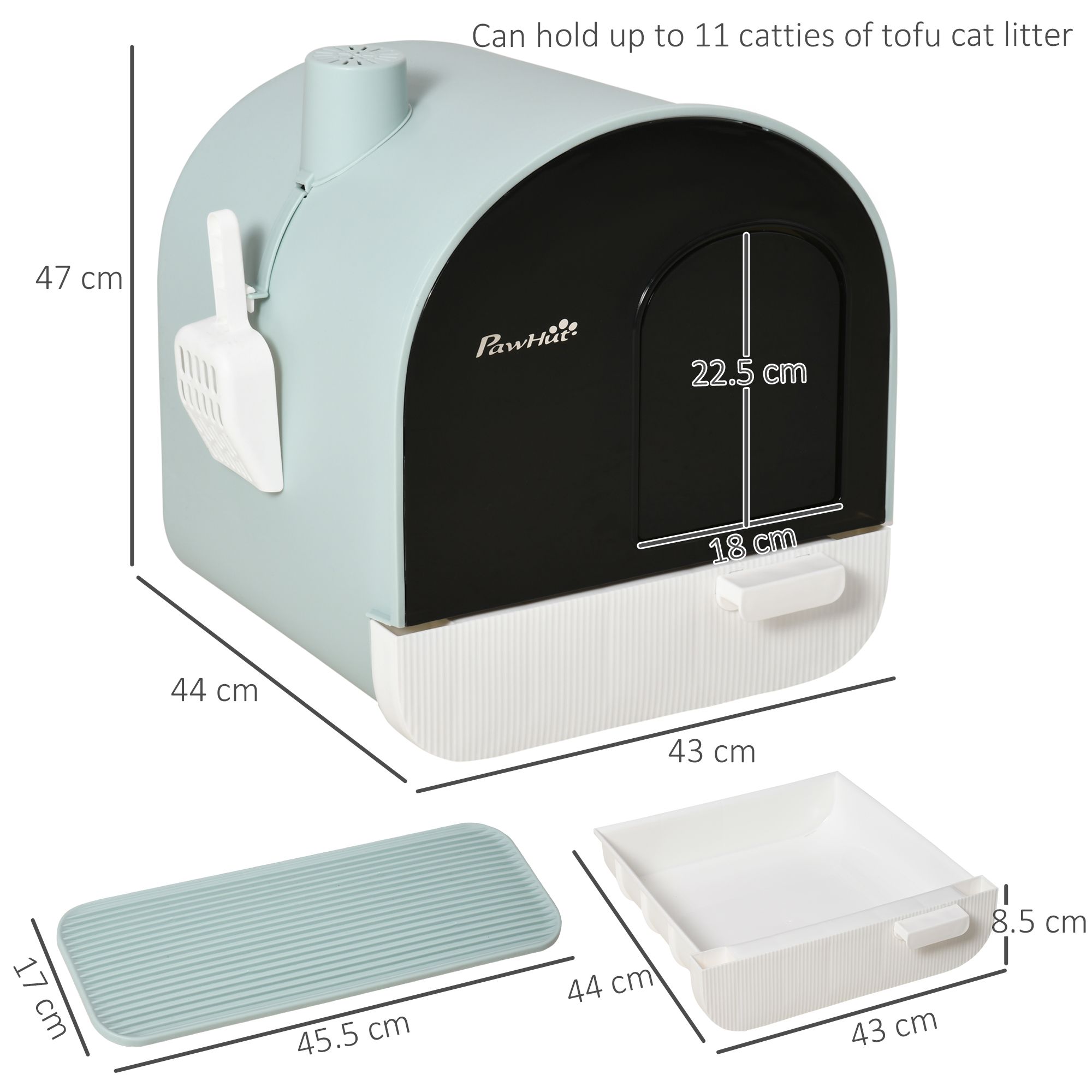 - EASY TO CLEAN: This cat litter box with lid features removable tray for quick and efficient cleaning. Comes with a scoop which can be attached to the side when not in use.