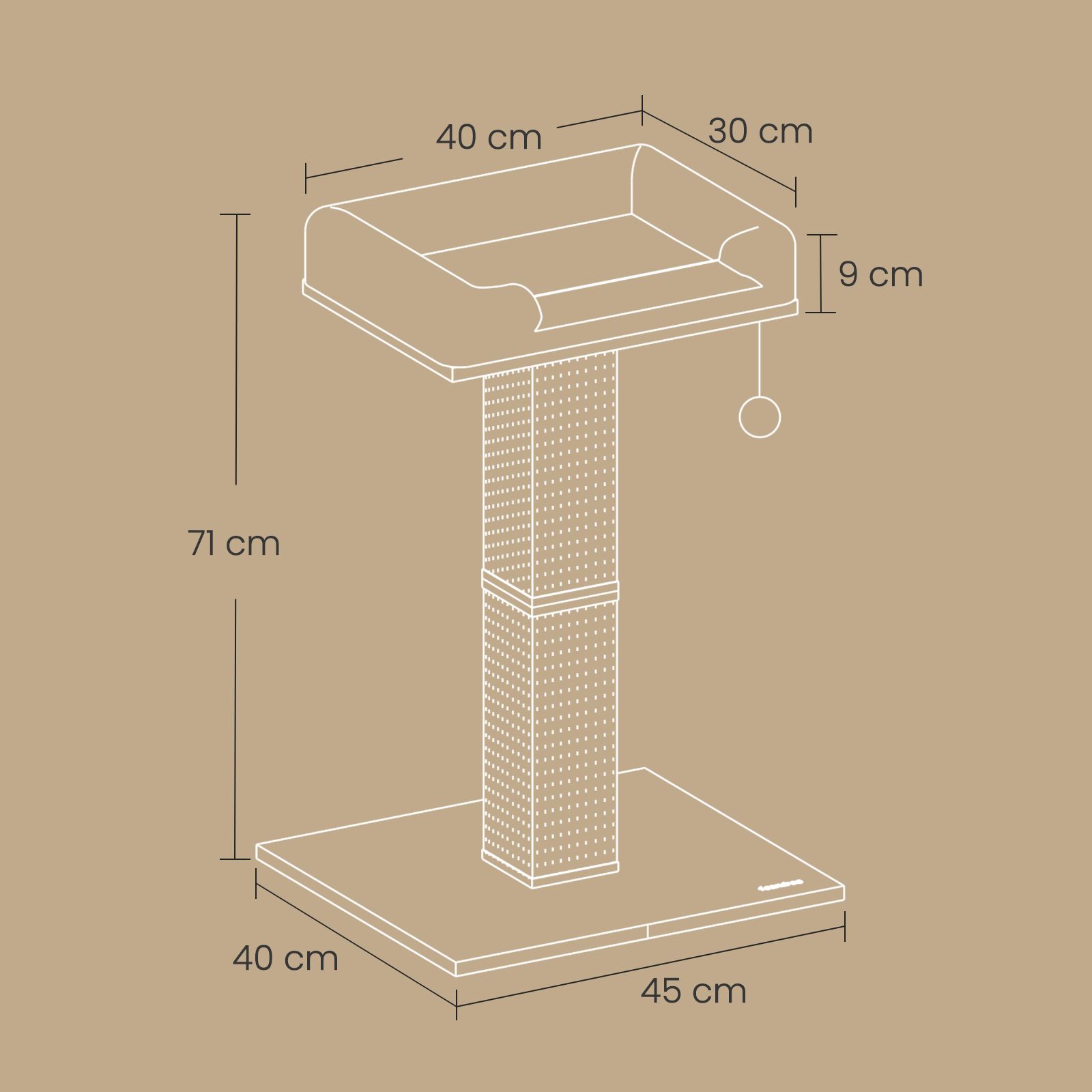 Cat Scratching Post - MARRAE Plush Perch with Sisal Rope - Light Grey