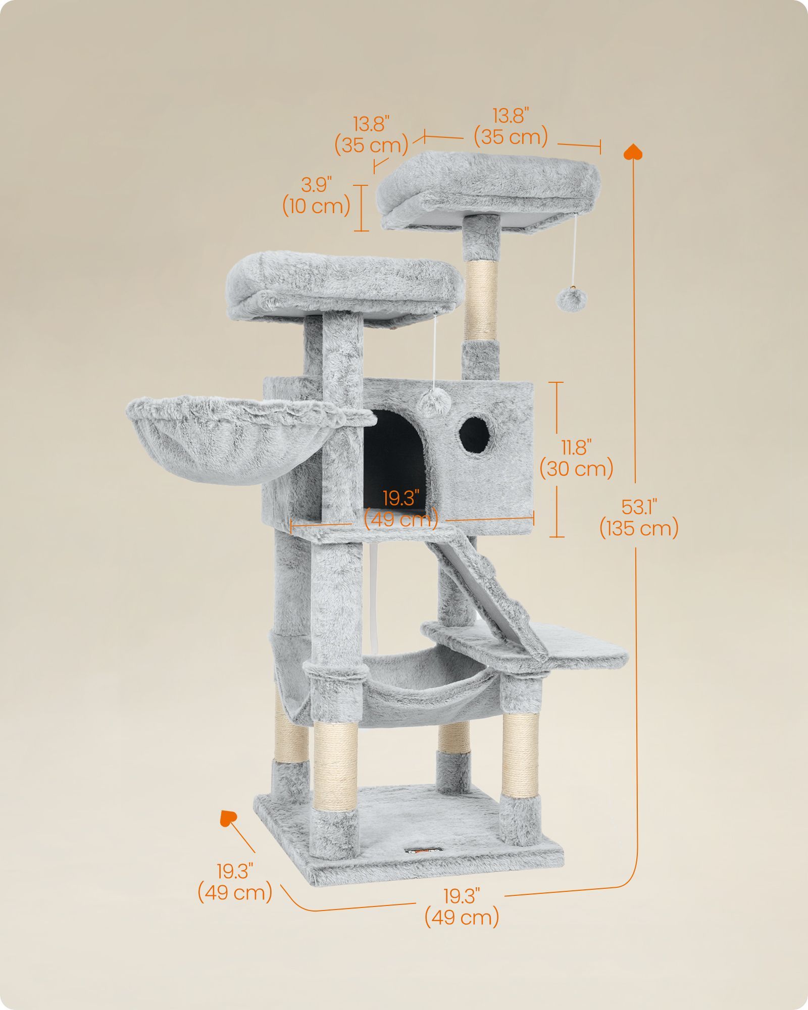Cat Tower - FINRIA Ultra-Soft Large Cat Tower - White Grey
