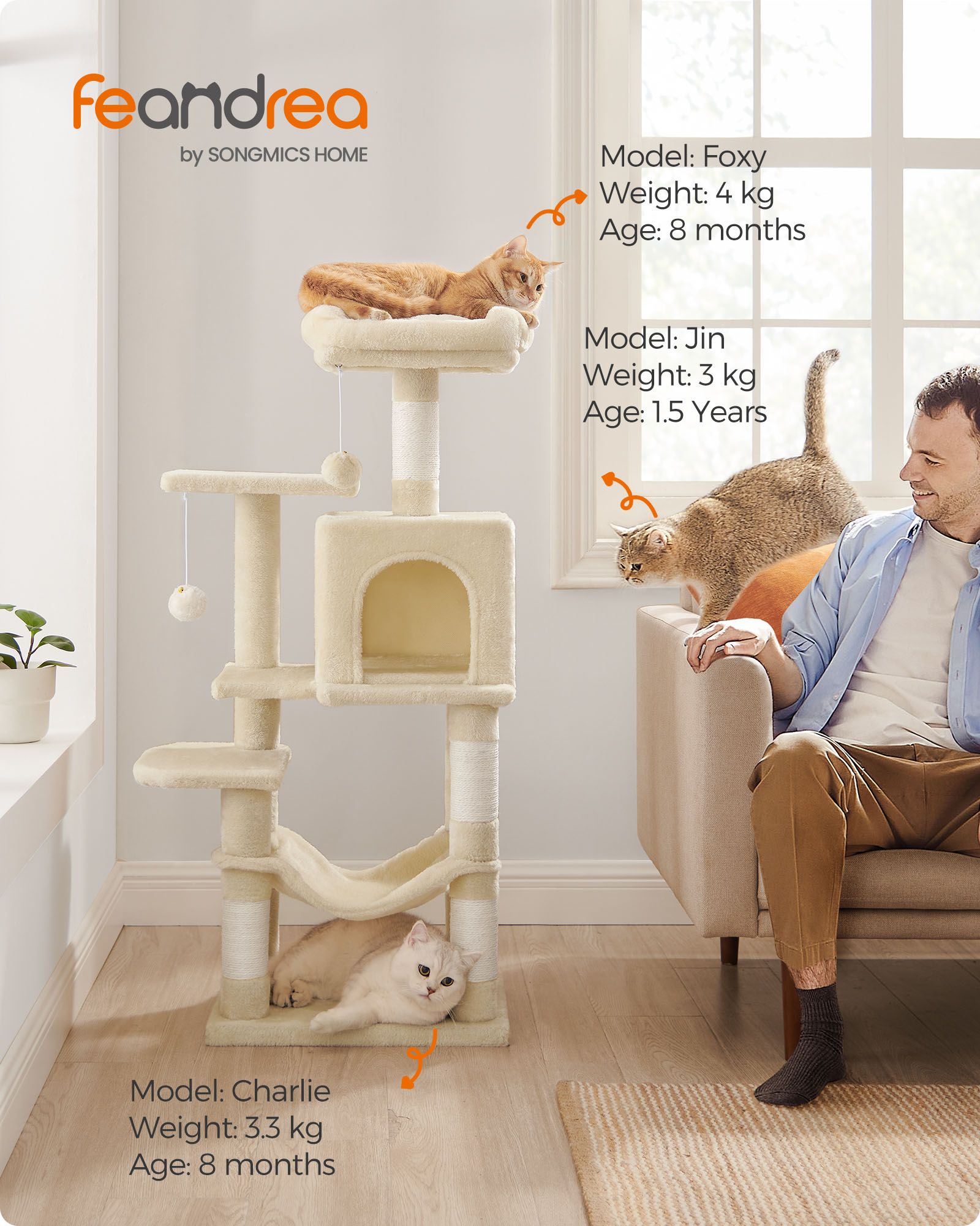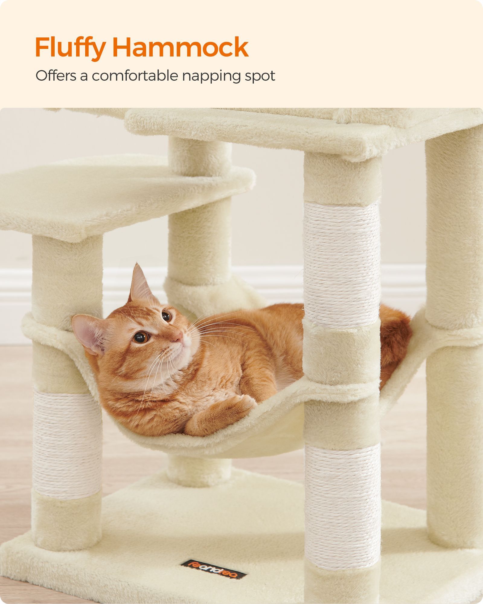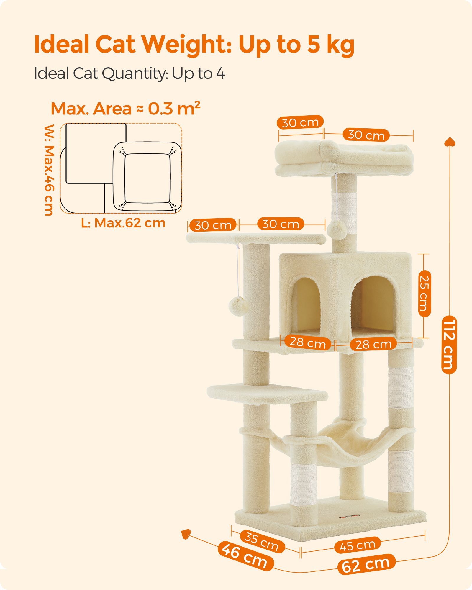Cat Tower - MODRAE 112 cm Tall Cat Tree with Scratching Posts - Beige