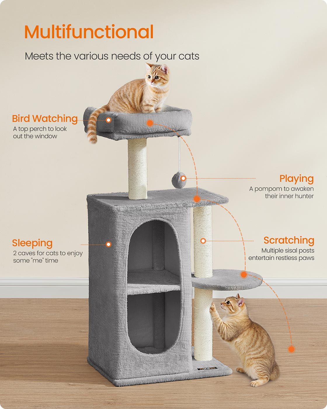 Cat Tree - AVORAE Tower 2 Caves Multi-Cat Household - Light Grey
