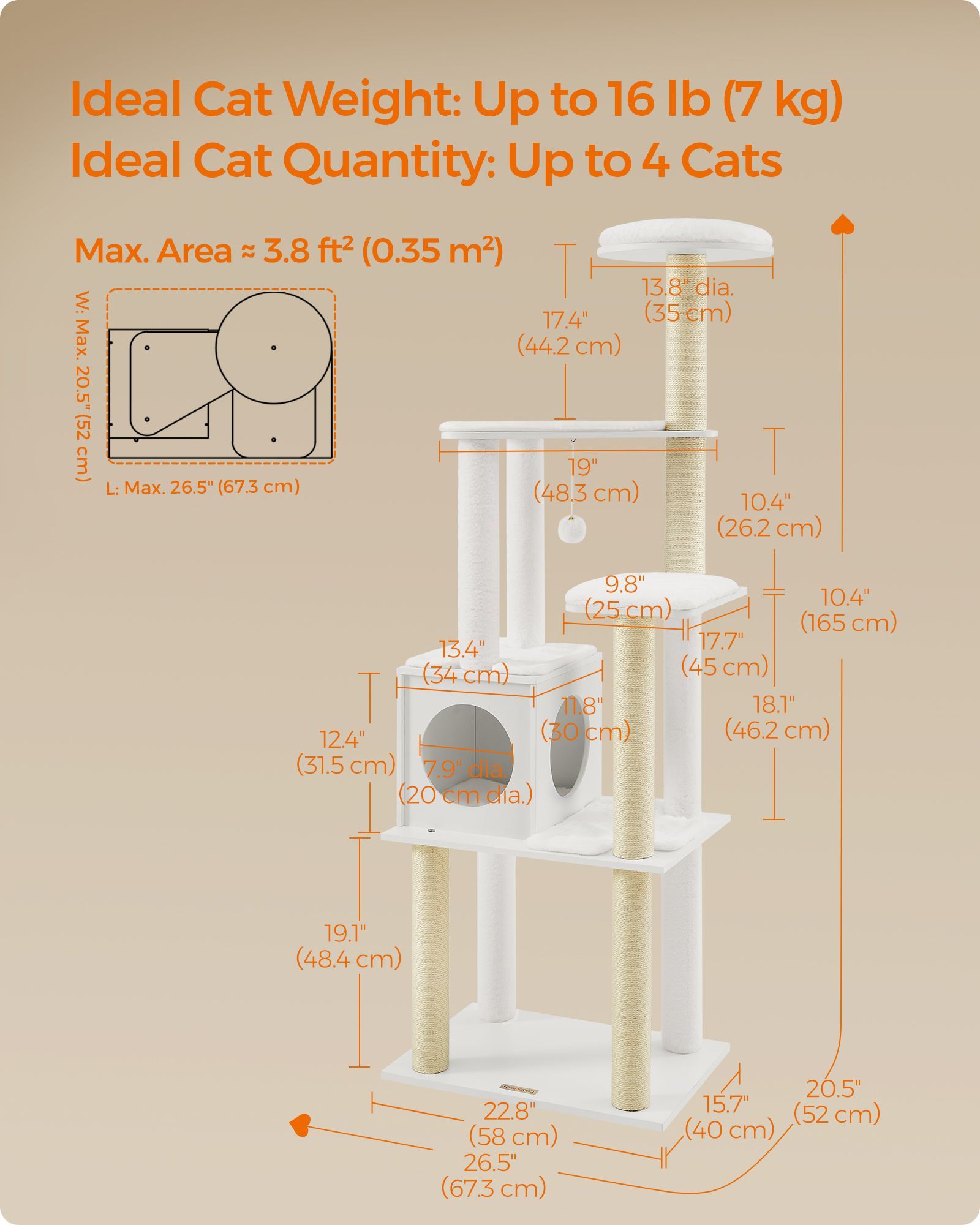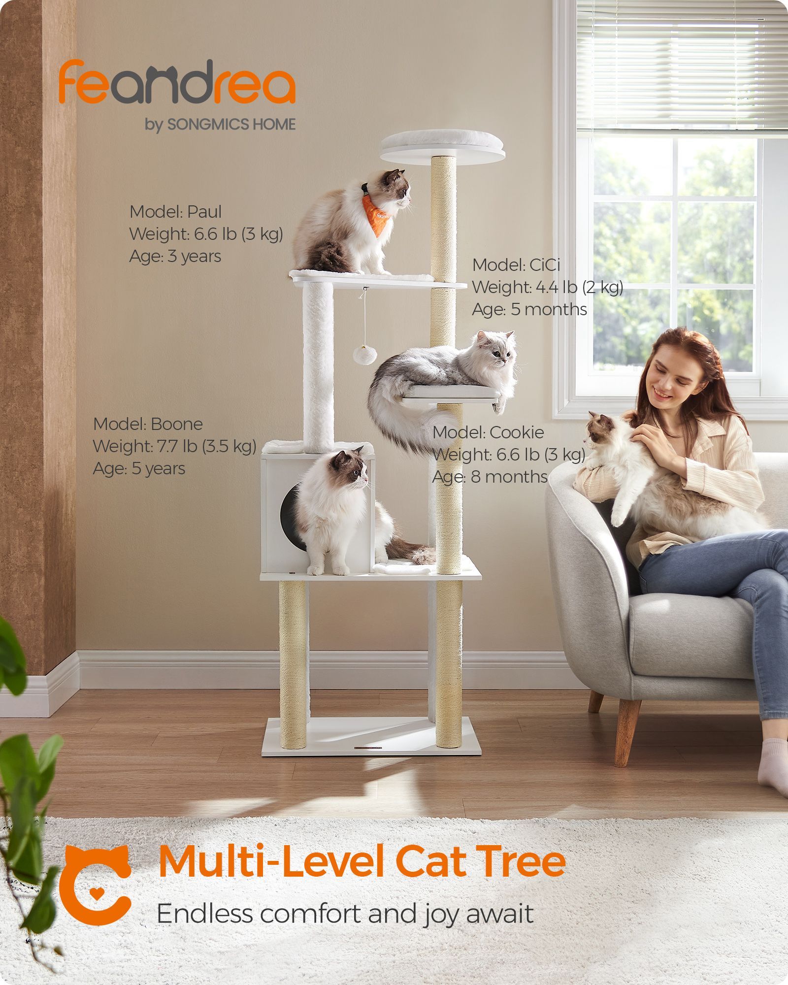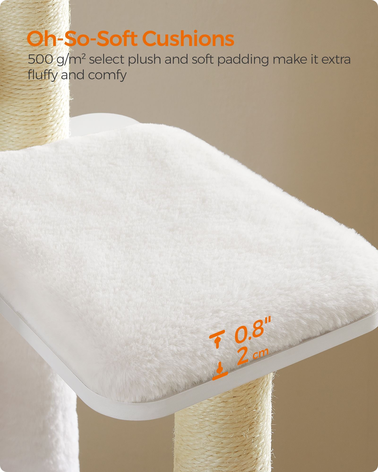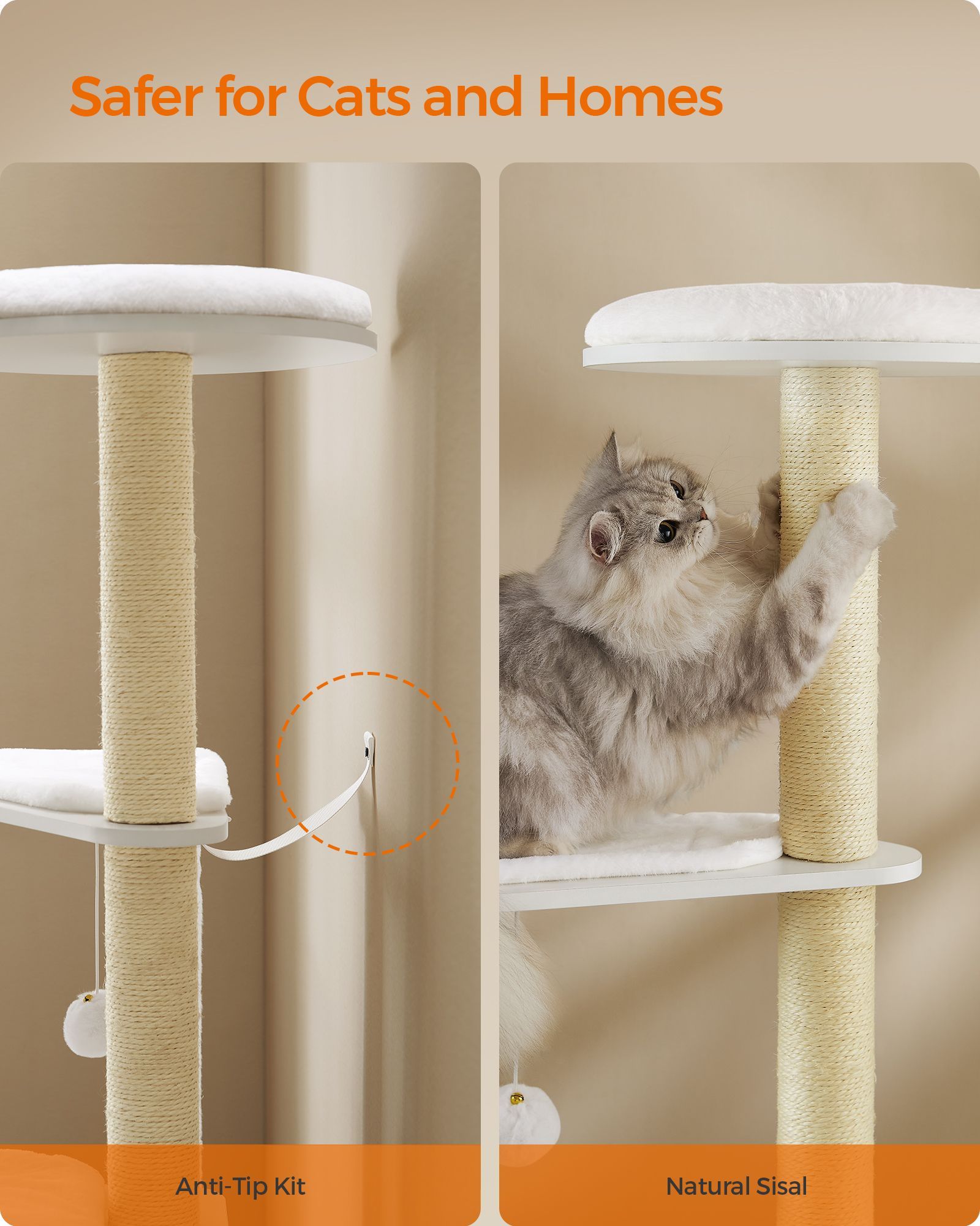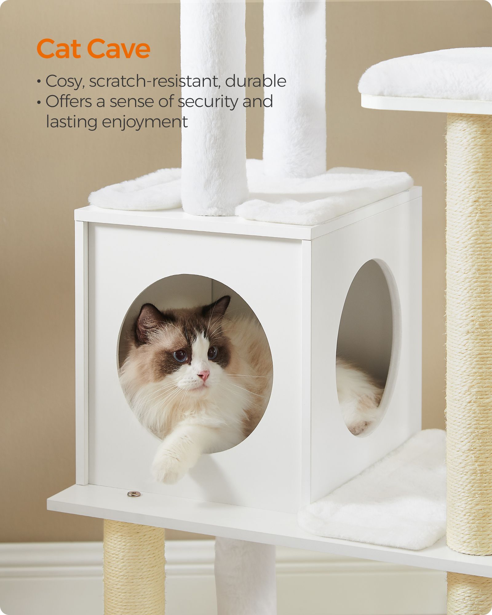 Cat Tree - FINRIA 165 cm Tall Tower with 5 Scratching Posts - White