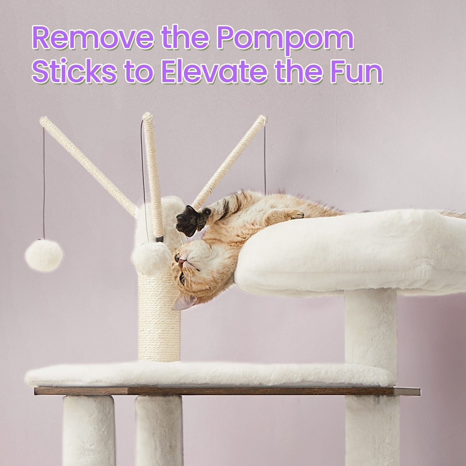 Cat Tree - MARRAE Hidden Litter Box Furniture Scratching Posts Pompom Stick - Rustic Brown