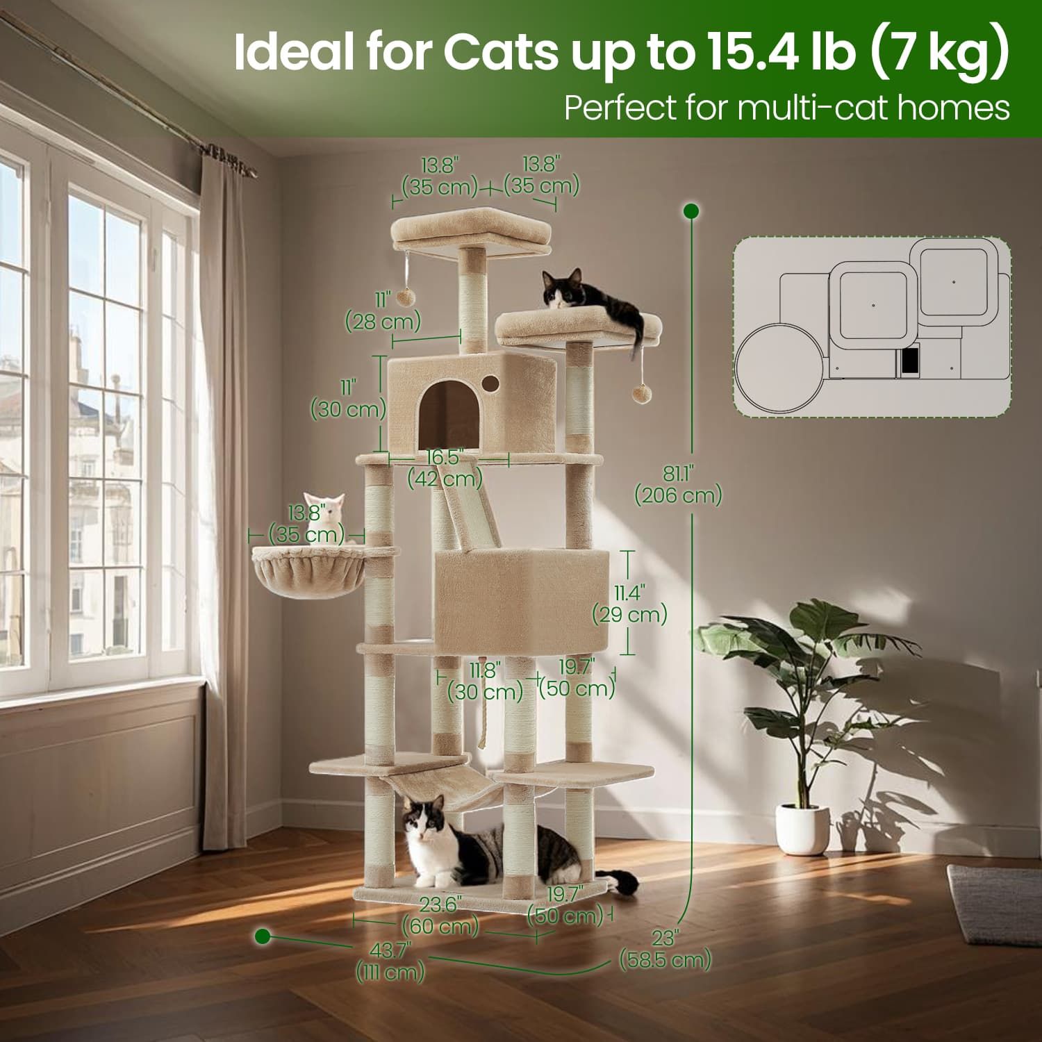 Cat Tree - MARRAE Large Tower Scratching Posts Perches Hammock - Camel Brown