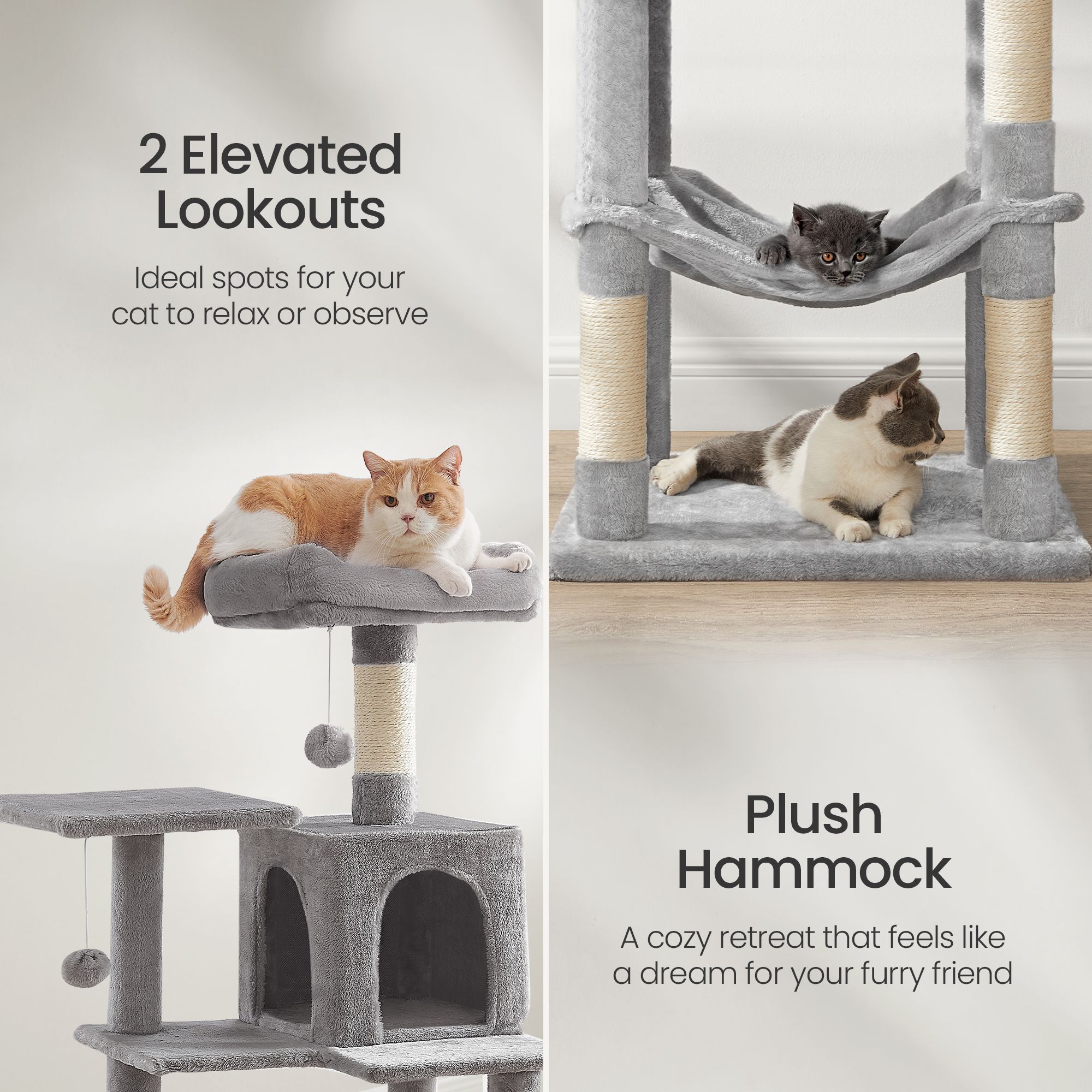 Cat Tree - MARRAE Multi Level Condo with 4 Scratching Posts and 2 Perches - Grey