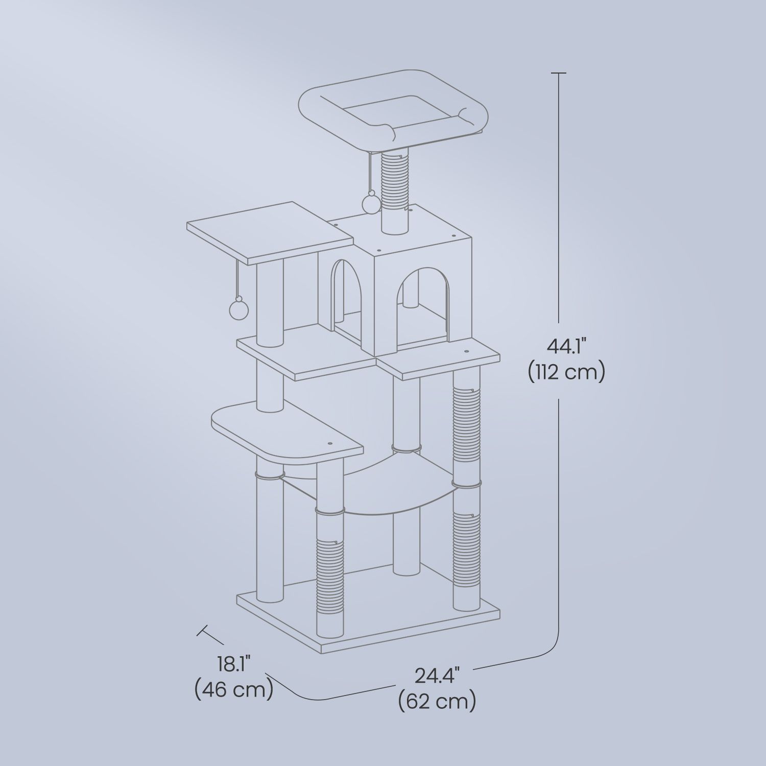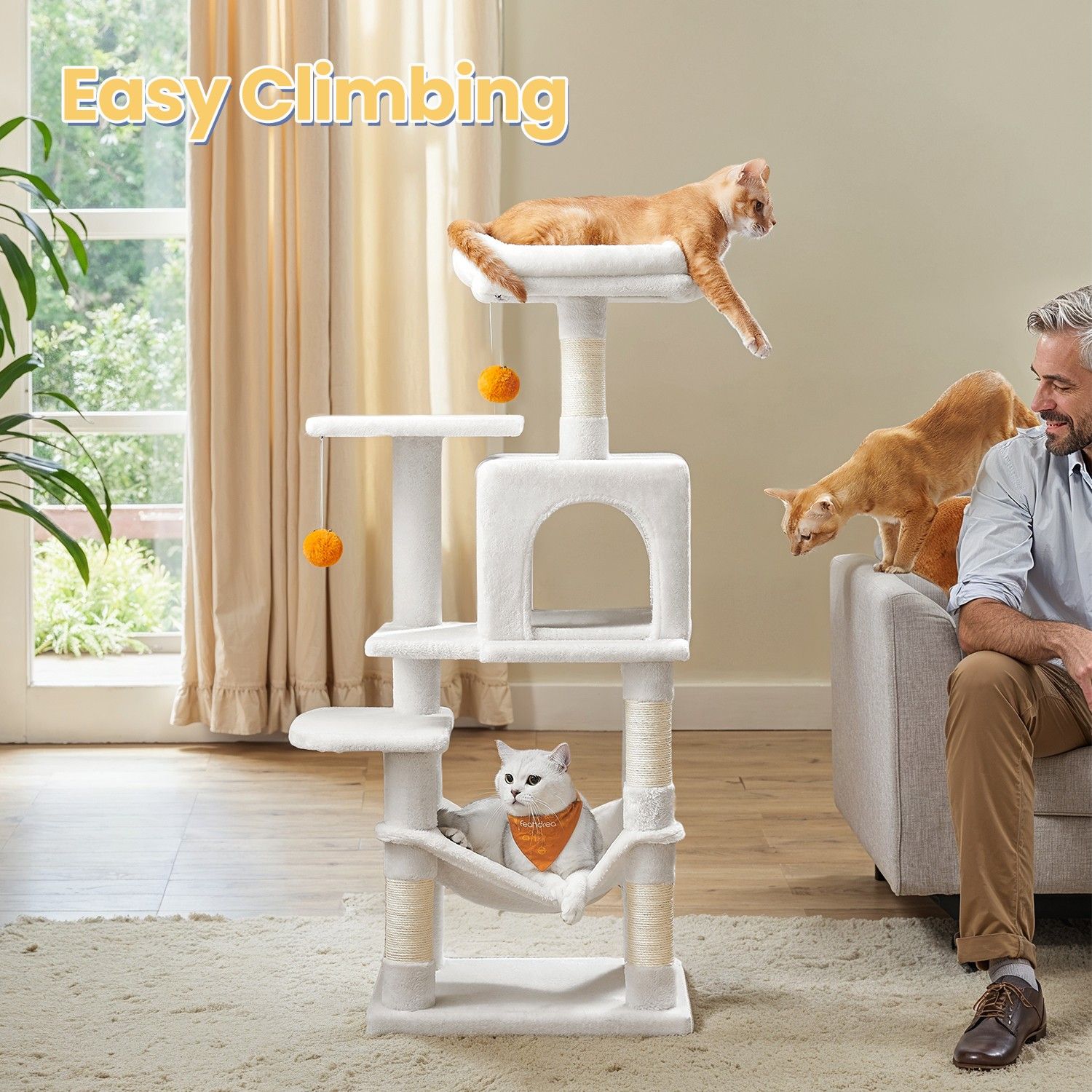 Cat Tree - MARRAE Multi Level Condo with 4 Scratching Posts and Hammock - White