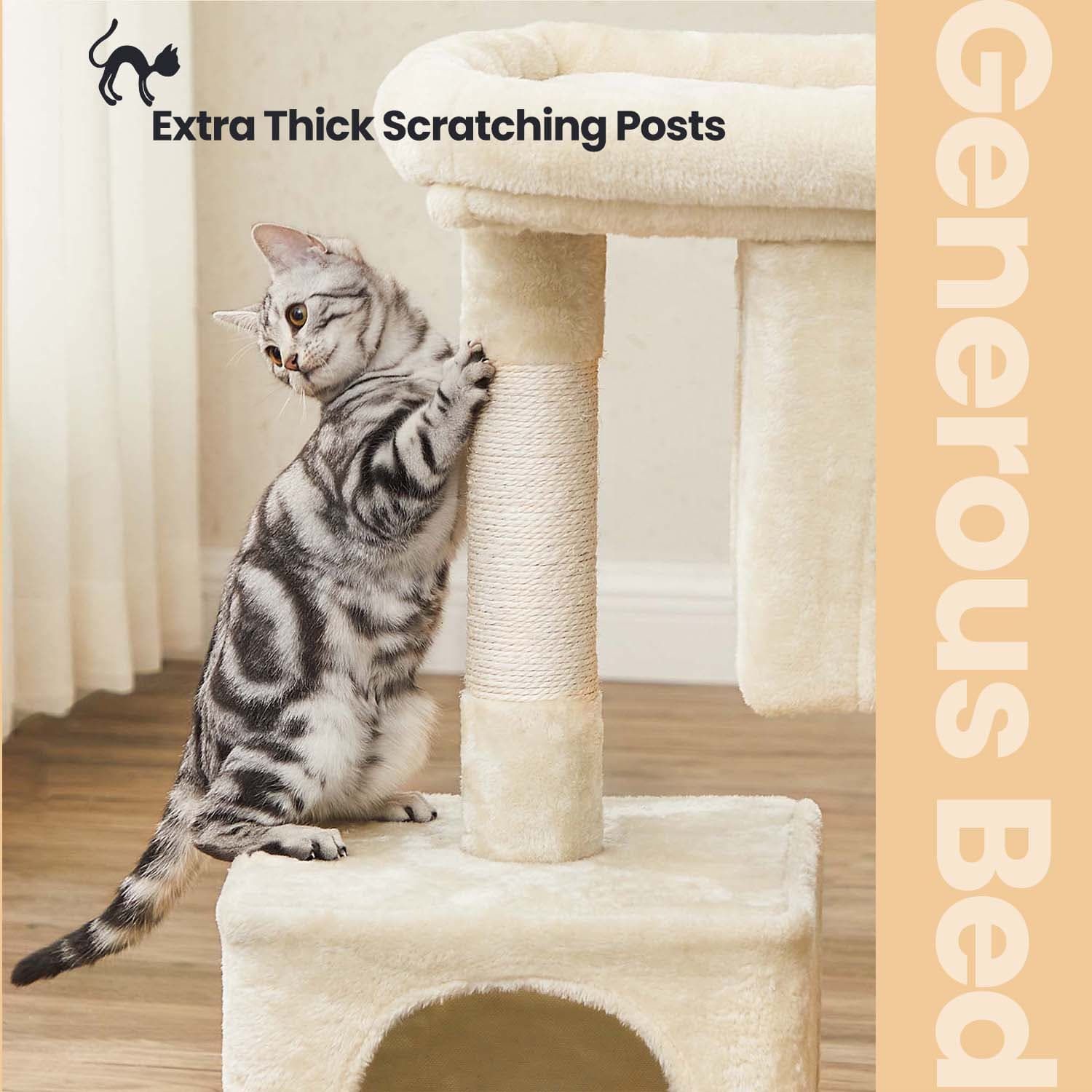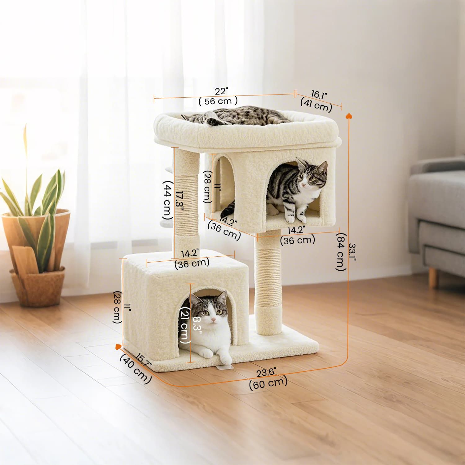 Cat Tree - MARRAE Tower Large Dual Compartment Cat Perch - Beige